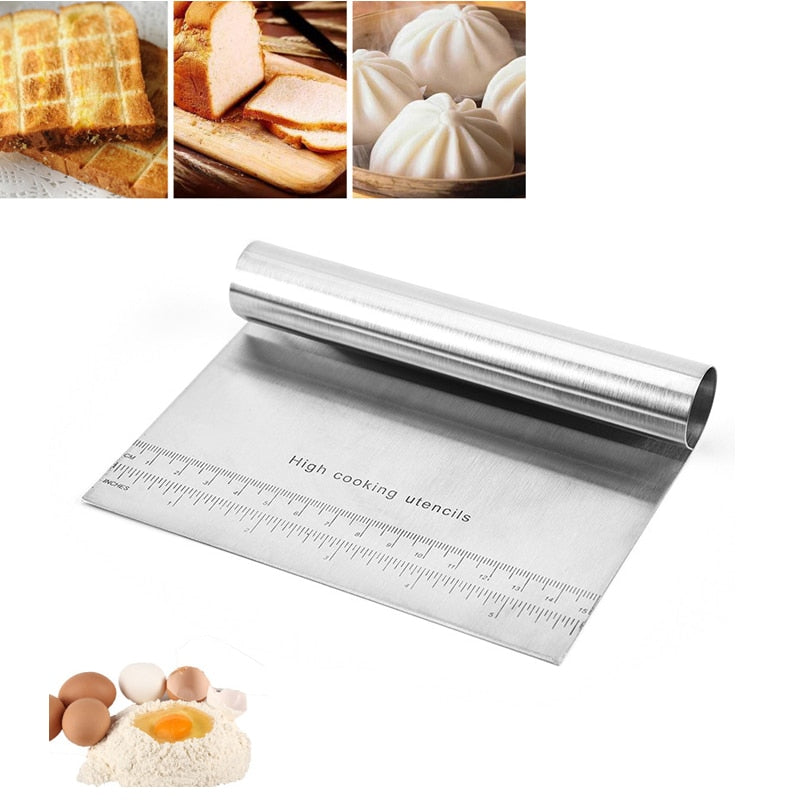 Multifunctional Kitchen Scraper - This versatile bench scraper does more than just scrape dough it's a great kitchen tool with a wide variety of uses! Designed to scrape and split bread dough, it can also be used for scraping, crushing, chopping fruits and vegetables, scooping chopped veggies or herbs, smoothing frosting on cakes, cutting pizzas, measuring and more!