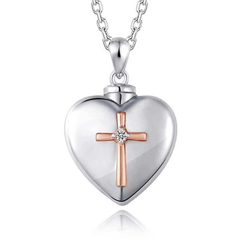 Love Heart Pendant Necklace, Funeral Ashes Urn, Memorial Urn Pendant, Cremation Urn Pendant, Openable Rhinestone Cross Necklace, Ash Case Holder, Pet Urn, Urn.
