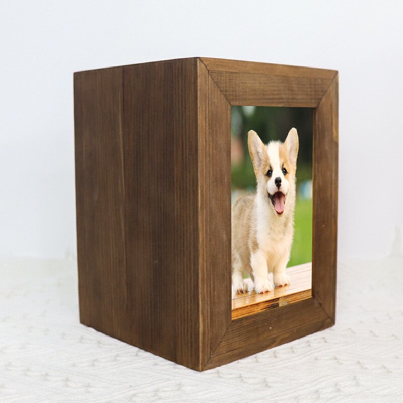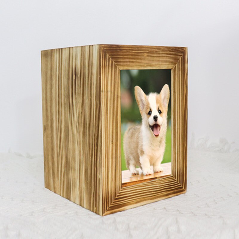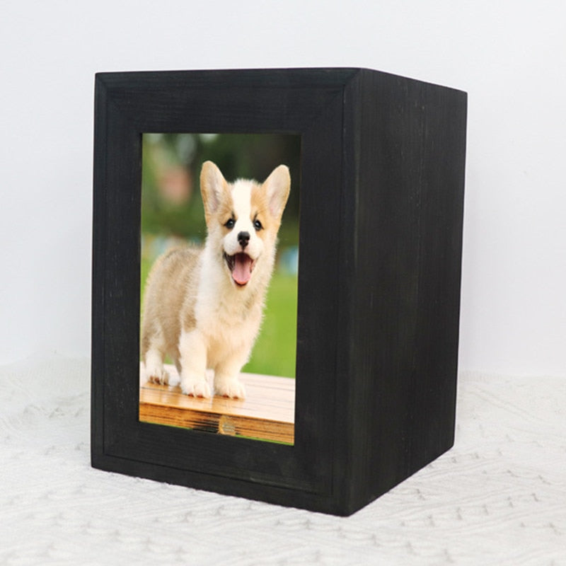 - The personalized pet urn allows one pictures to be inserted on the front of the box, and unique carved paw prints with it. Perfect for remembering your favorite moments with your best friend.