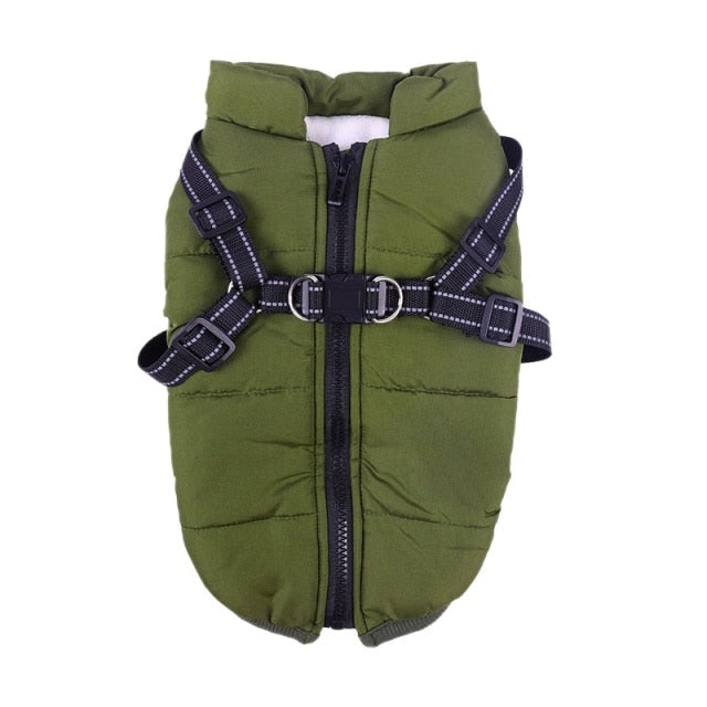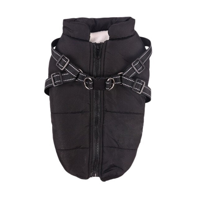 Harness Pet Dog Coat Clothes Winter Warm Thicken Reflective Skiing Suit Cotton Padded Vest Plus Velvet Waterproof Jacket