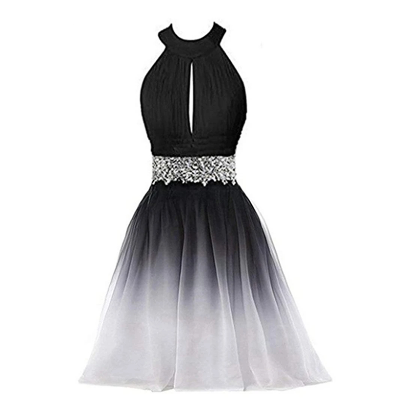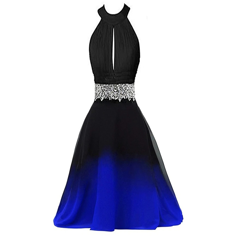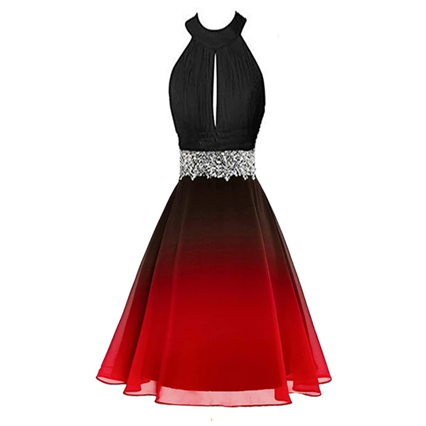 - Featuring sleeveless halter neck design with elegant beaded waistband, fitted bodice, cinched and tapered high waist with stunning floaty A line floor short skirt this stunning dress will have you feeling truly special at any occasion.