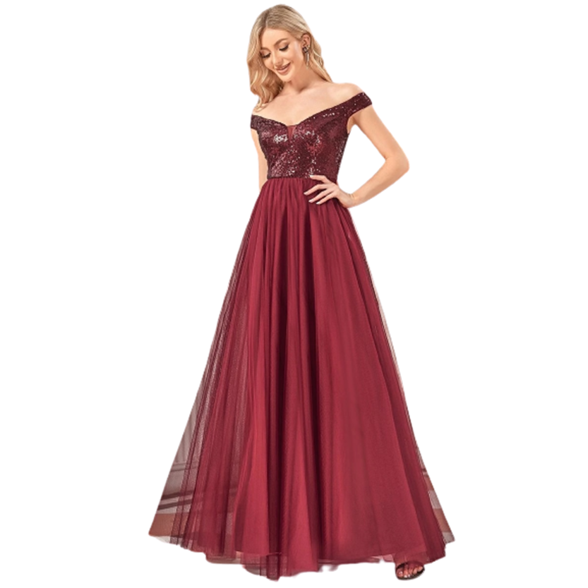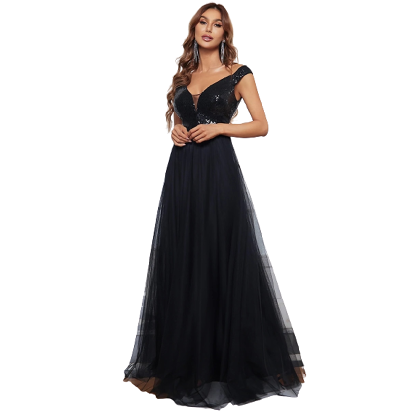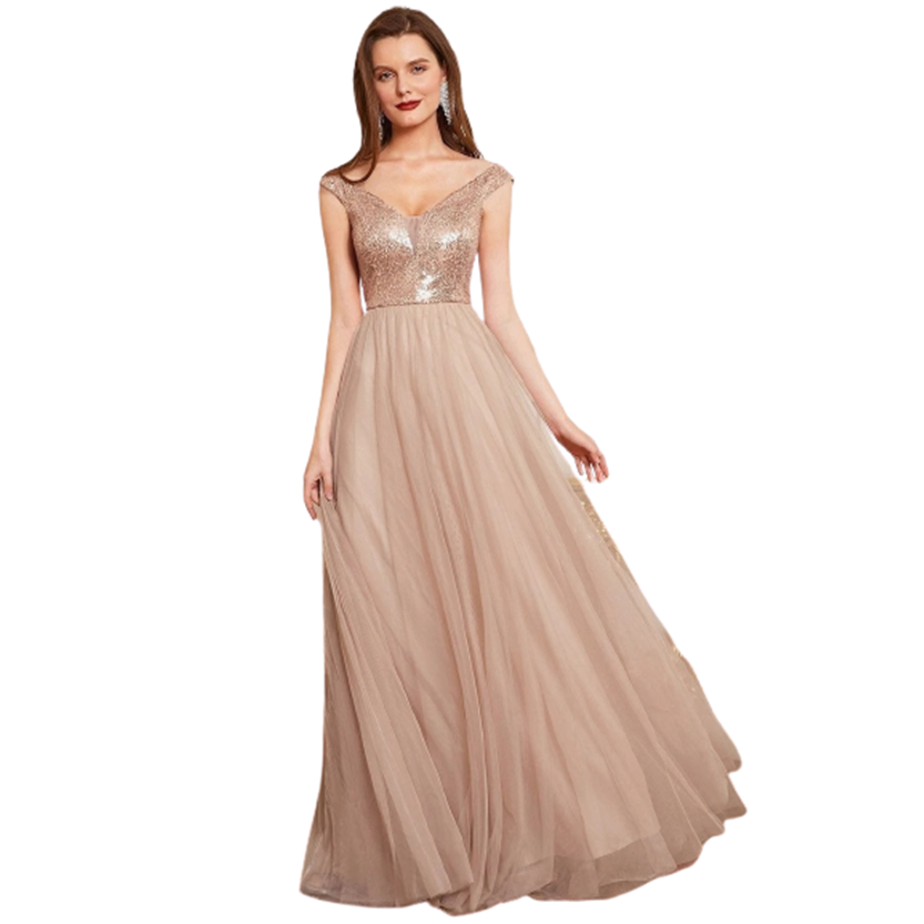 Looking for something special to wear to your next big event? Then our beautiful free flowing sequined evening dress may be just what you are looking for.
