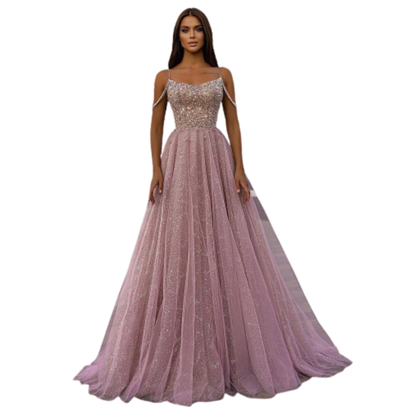 Indulge in true elegance with our stunning sequin tulle ball gown, crafted from premium chiffon and adorned with shimmering sequin beading. This sophisticated dress is perfect for any event, including balls, weddings, and proms and is guaranteed to make a statement as you enter the room.