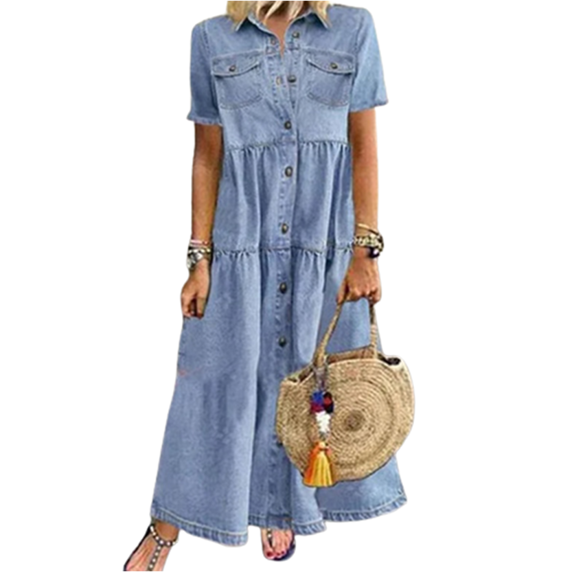 - Made from high quality polyester and denim this gorgeous sun dress is sure to get you noticed.