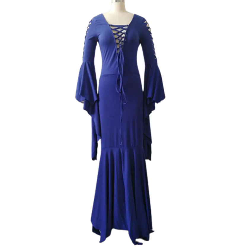 These women's long gothic Morticia Adams style dresses are the perfect piece for Halloween, cosplay, fancy dress or themed party. Our medieval, maiden, corset hugging long dresses will ensure that you standout at any dark event.