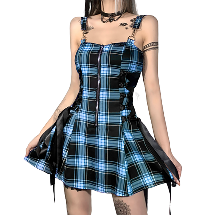 Fairy Grunge Plaid Dress, Vintage Dark Gothic Alt Outfits, Women Mall Goth Punk Dress, Aesthetic Y2k Zipper Bandage Corset Dress, Gothic Dress. Women's Summer Casual Dress, Casual Beach Dress, Sundress,