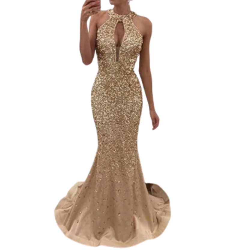 Find your perfect elegant evening dress for any event. This sleeveless, backless halter style offers a sleek bodycon fit, making it ideal as a party dress, cocktail dress, ball gown, or formal dress. Also a beautiful option for graduation, prom, or as a bridesmaid dress. A must-have for any wardrobe.