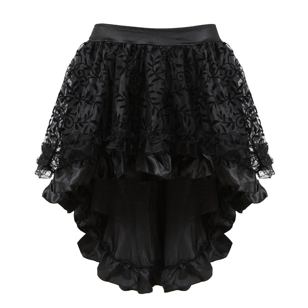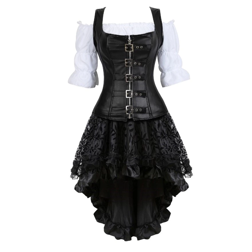 1 x 3 Pcs Set / Black Over Bust Corset + Skirt + Shirt