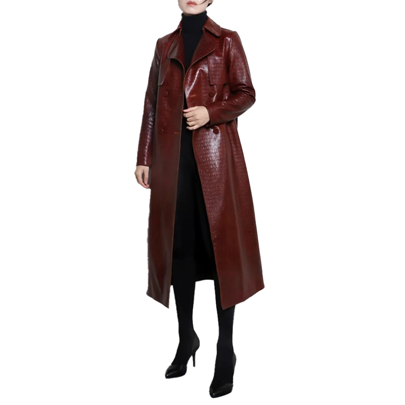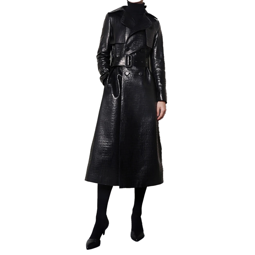 - Single breasted with button closure, turned down collar, open lapel and long sleeves, this extra long overcoat style jacket will keep you warm while showcasing your style and individuality. Lightweight and durable with exquisite workmanship and neat lines this aligator print design trench coat it is sure to impress!