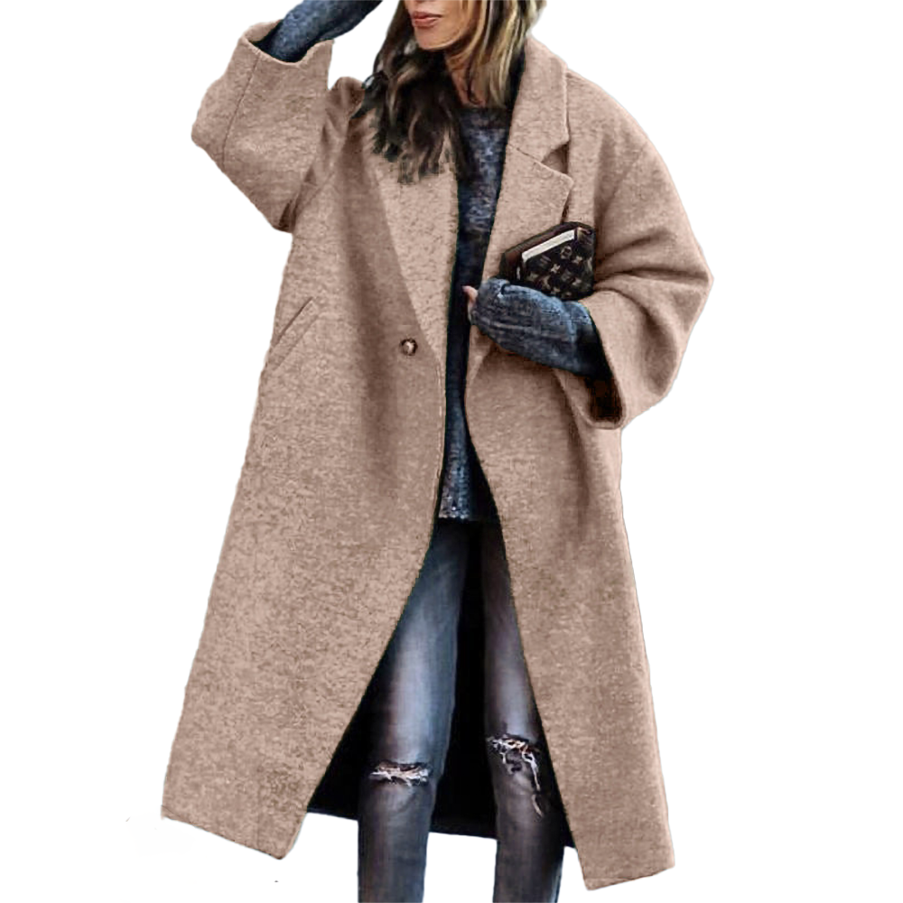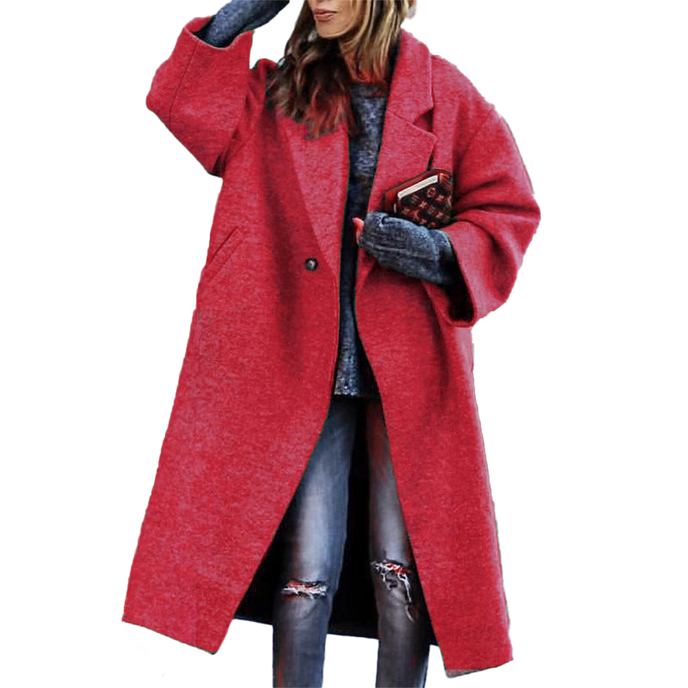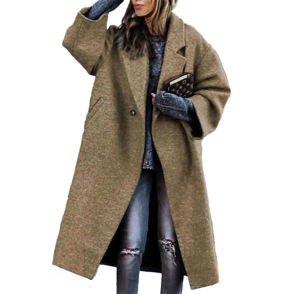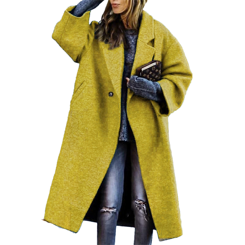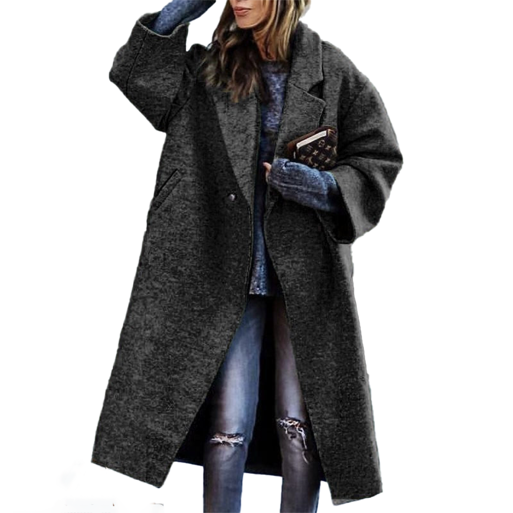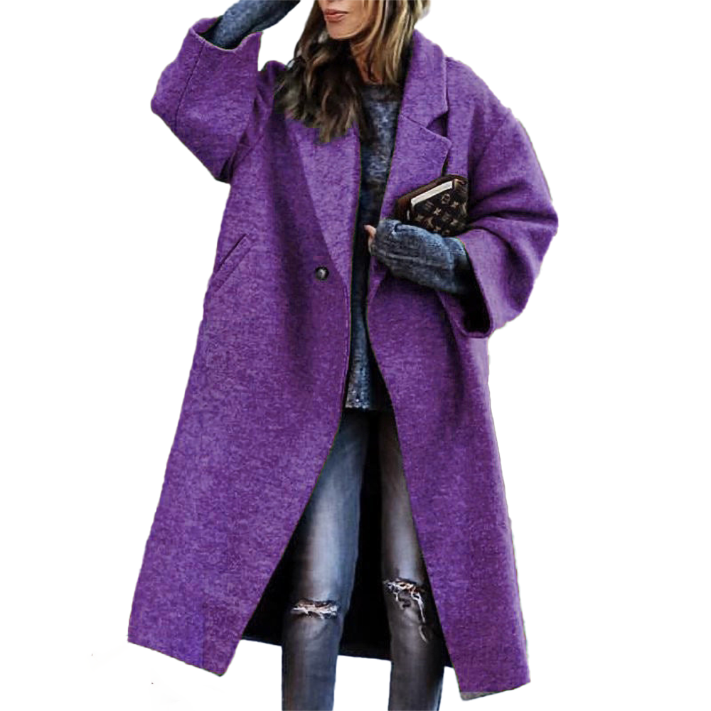 This long overcoat for women is made with a high-quality, supple material ensuring a comfortable fit. The traditional lapel collar and 1-button closure add an elegant touch, while the loose fit design gives off a contemporary feel. Crafted from a warm wool blend, it's ideal for layering on chilly days and can be easily dressed up or down for any event. It also makes for a thoughtful present for special celebrations such as birthdays, Christmas, or anniversaries.