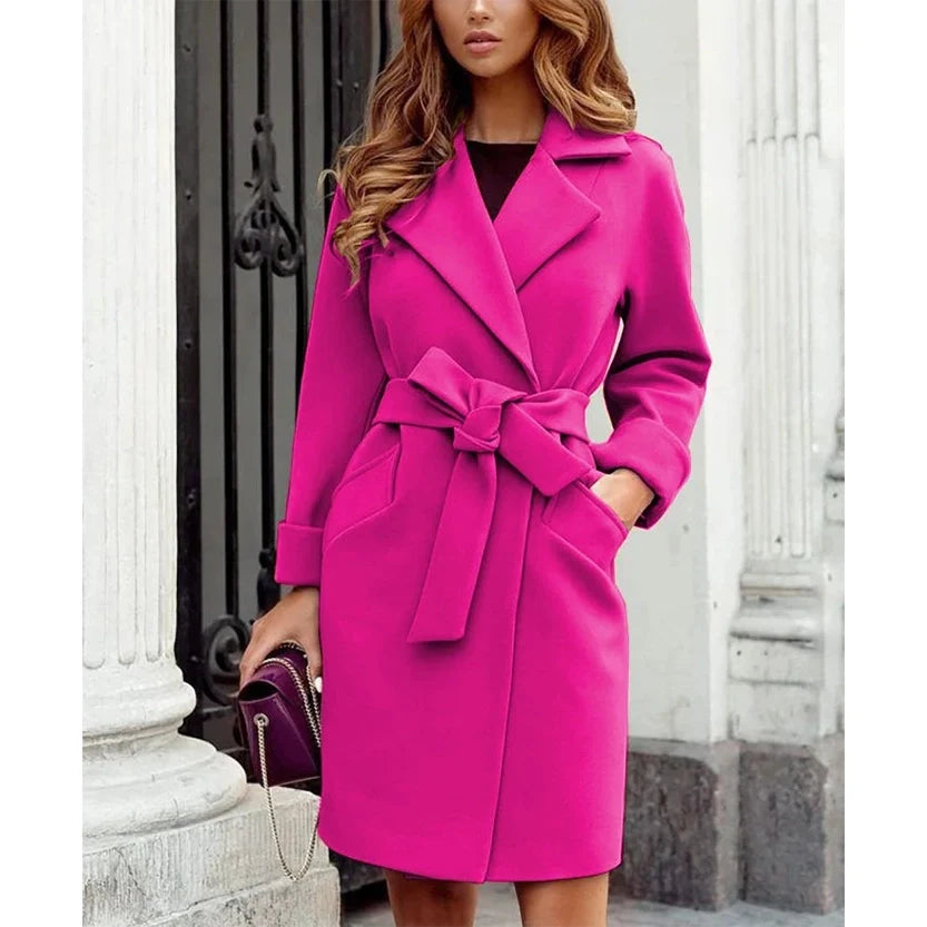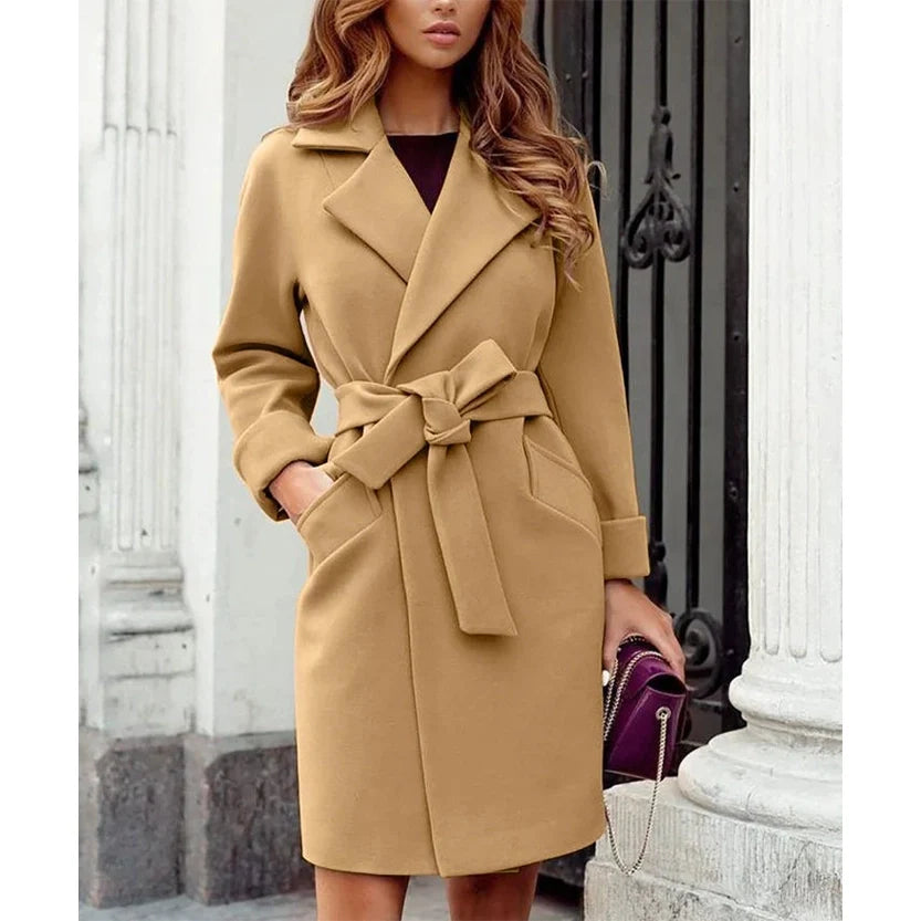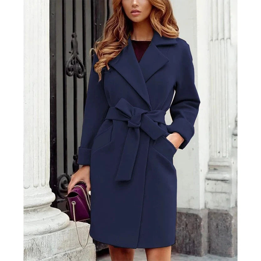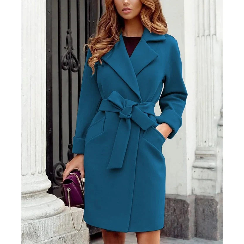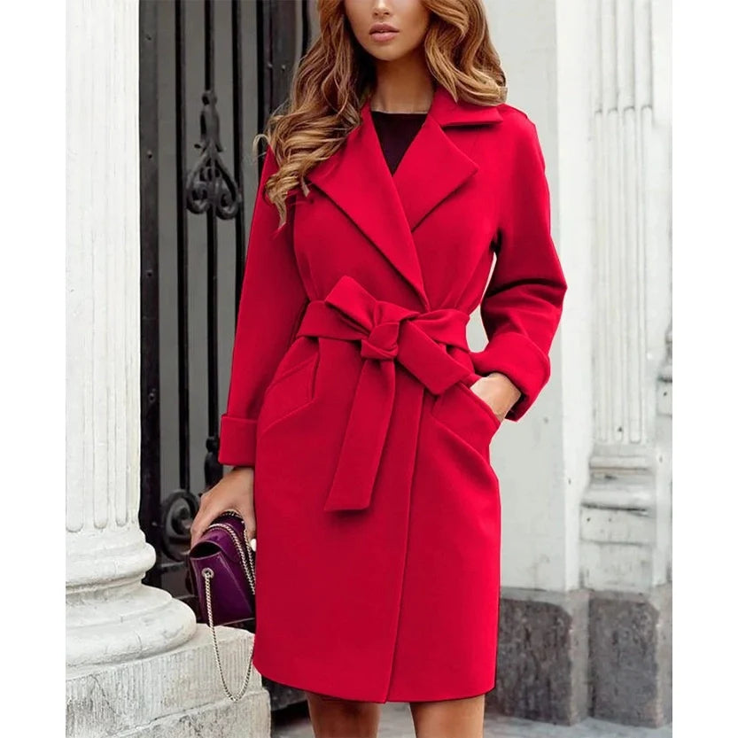 This women's winter coat is made with a high-quality, supple material for a comfortable and flexible fit. The timeless lapel turn down collar and tie belt closure add a refined touch, while the slim fit above the knee gives it a contemporary edge. Crafted from a cozy wool blend, it's ideal for chilly days and can easily be dressed up or down for any event. It's the perfect gift for special occasions such as Birthdays, Christmas, or Anniversaries.