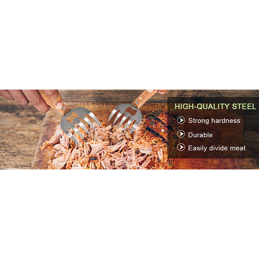 - MULTI-FUNCTIONAL - Our pork claws are perfect for pulling pork, shredding chicken, lifting turkey, tossing salads. The six claws on each of barbecue forks are extremely sharp in order to guarantee proper pork shredding.