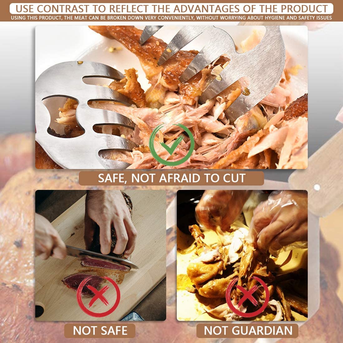 - 🔥 THE PERFECT GIFT FOR MEAT LOVERS! --- You can use them to pull pork, shred chicken, lift turkey or toss a salad. Overall, this is a handy tool to have around your kitchen, especially if you are a meat lovers and and also useful for any housewife! If you aren't 100% Satisfied with our product, We'll Refund your Money -- Take the no risk challenge and order the powerful barbecue claws today!
