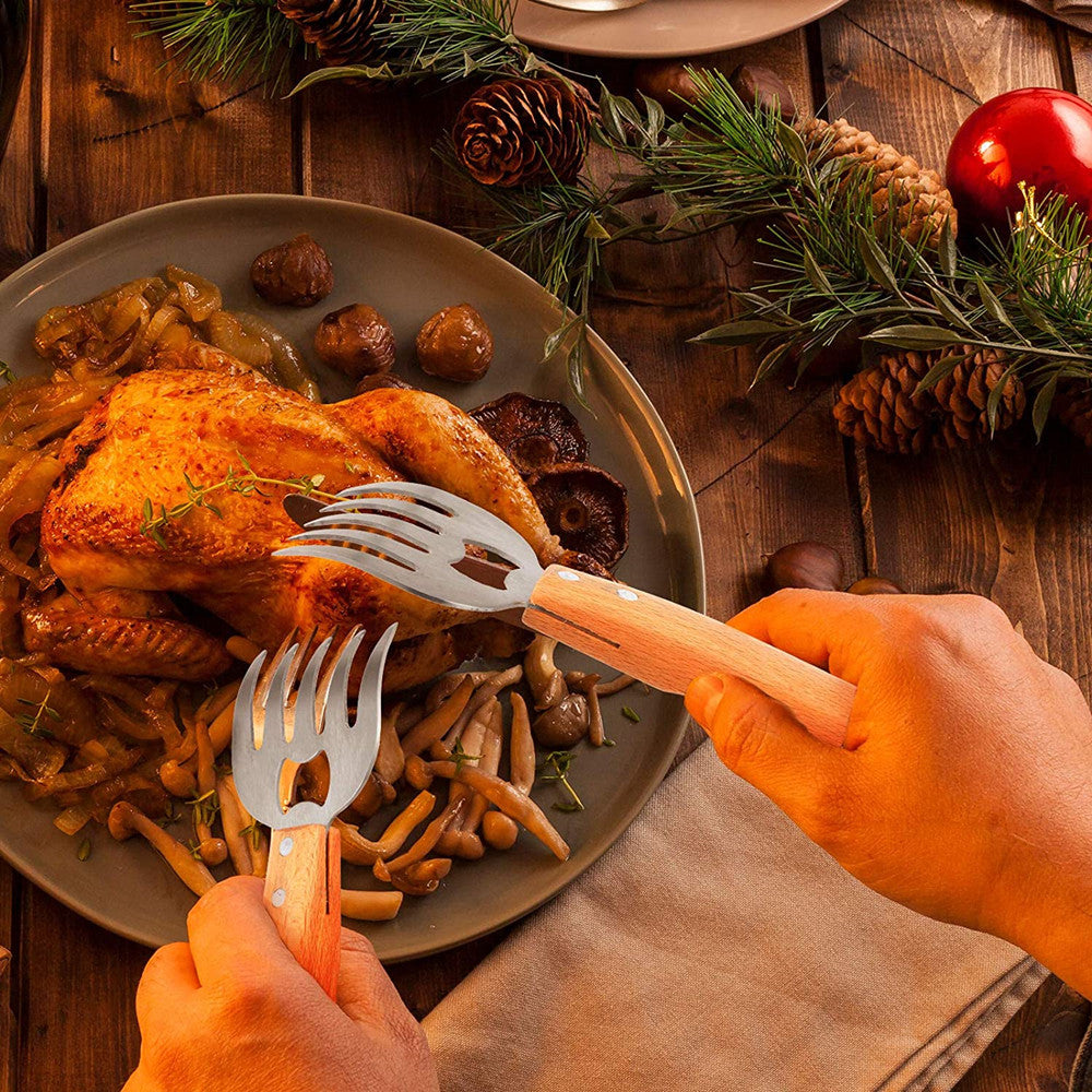 Meat Shredding Claws, Stainless Steel Meat Shredder with Long Wooden Handle, Bear Claws, BBQ Shredder, Paws, Forks.