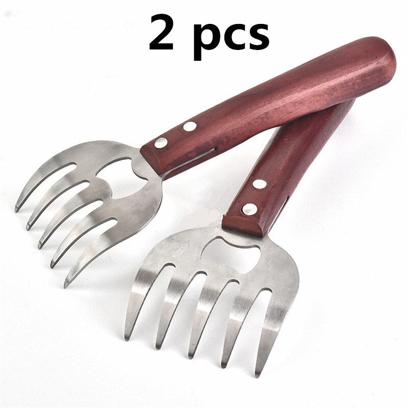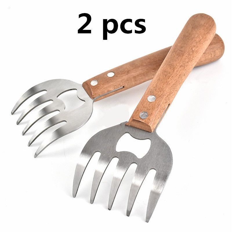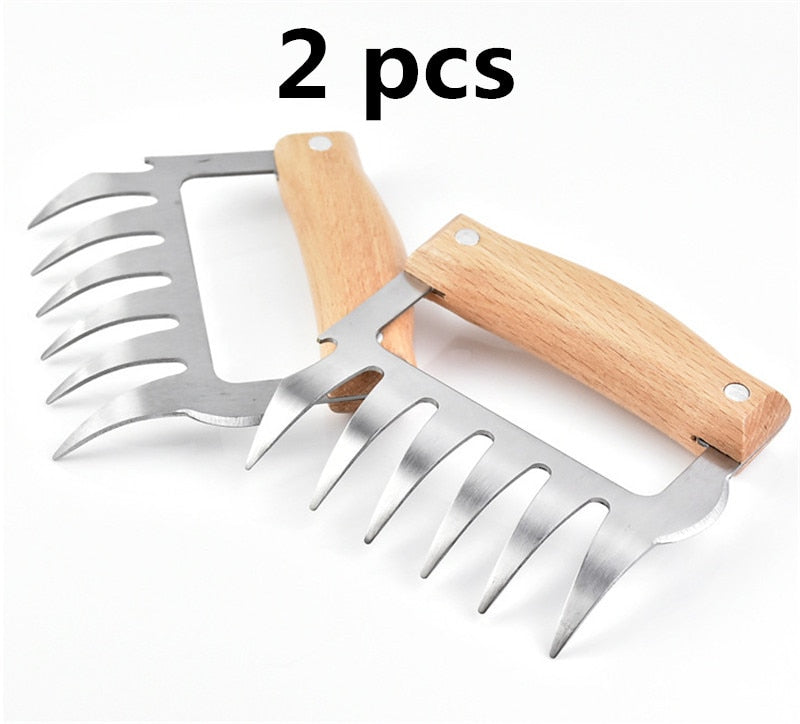 Meat Shredding Claws, Stainless Steel Meat Shredder with Long Wooden Handle, Bear Claws, BBQ Shredder, Paws, Forks.
