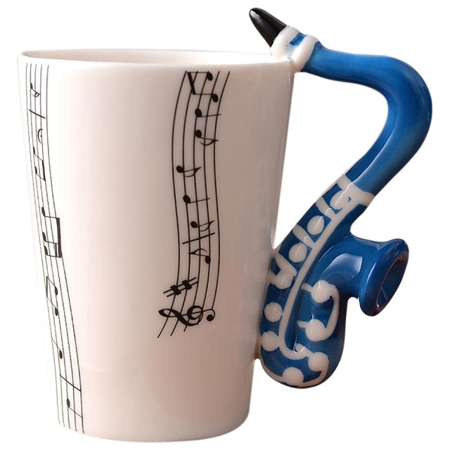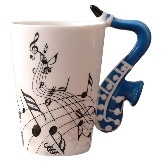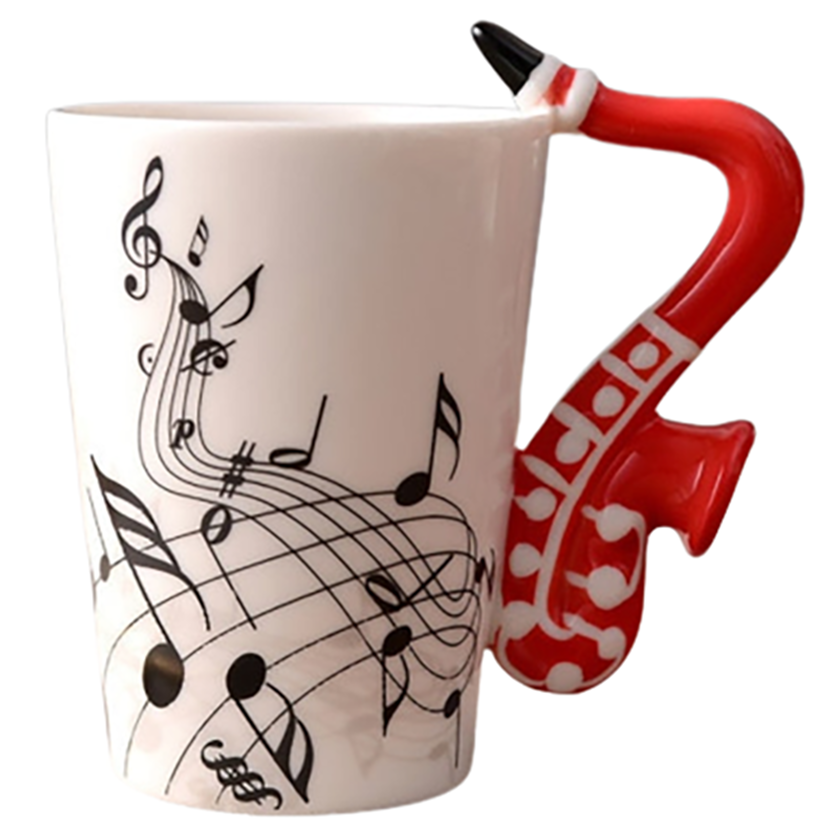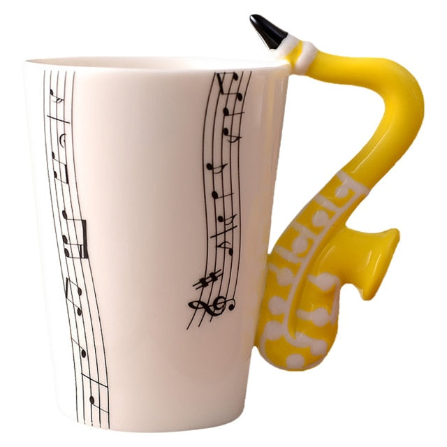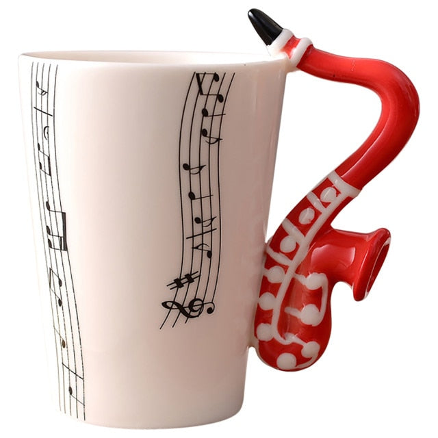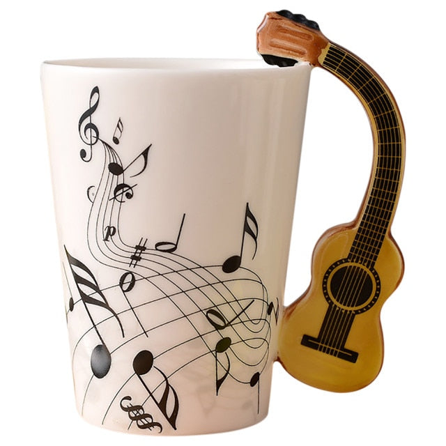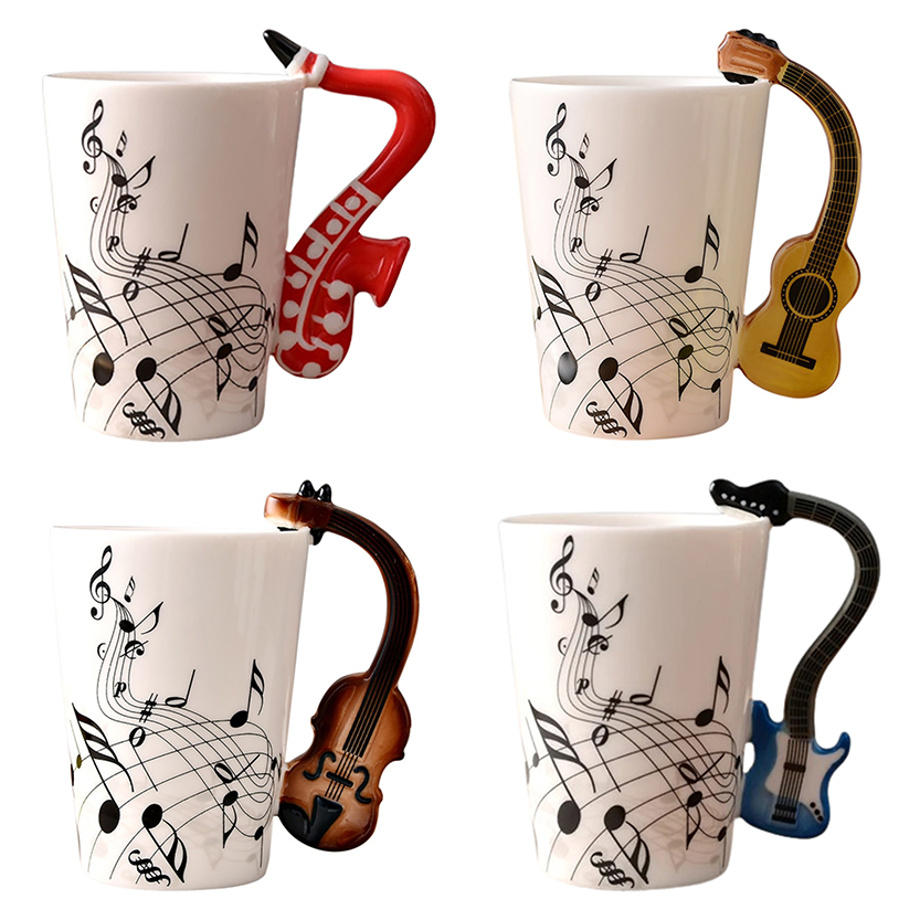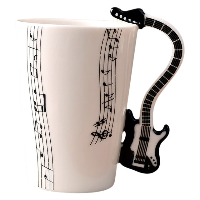 Musical Note Ceramic Coffee Cup, Guitar Handle Mug, Musical Instrument Cup, Guitar Mug, Gifts for Music Lovers, Gifts for Musicians. Coffee Tea Cups Mugs, Saxophone handled Cup, Electric Guitar Cup, Guitar Mug.
