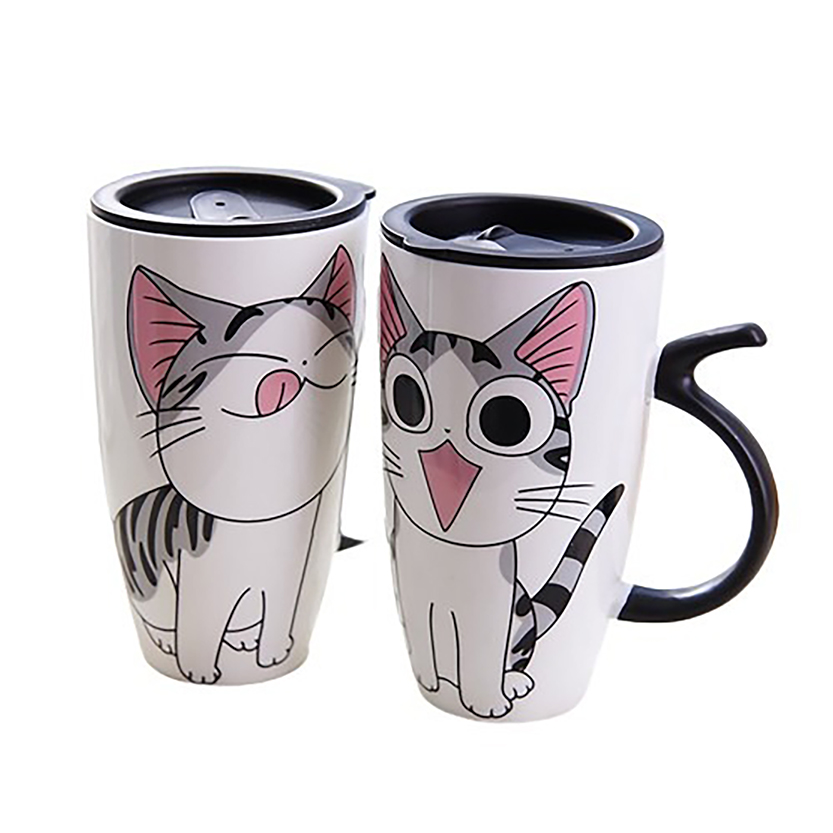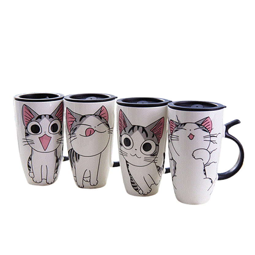 - These fun cartoon cat mugs are strong, durable and sturdy. With wide mouths, heavy ceramic bases and insulative properties they keep drinks hotter and colder for longer.