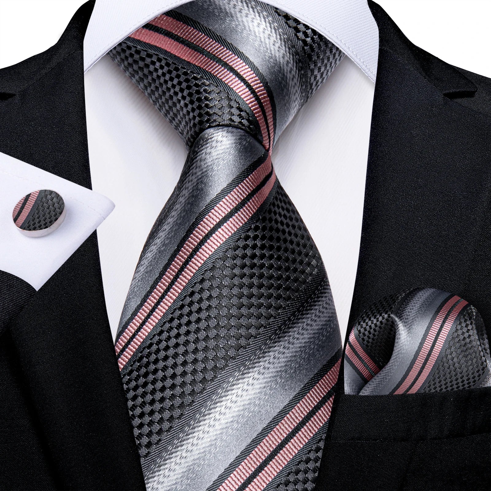 Silk Ties, Men's Formal Ties, Wedding Ties, Groom Wedding Ties, Groomsmen Ties, Men's Luxury Ties, Business Ties, Designer Ties, Paisley Ties, Plaid Ties, Men`s Tie Red Grey Purple Plaid Print Jacquard Woven Striped Tie Hanky Cufflinks Sets For Formal Wedding Business Party