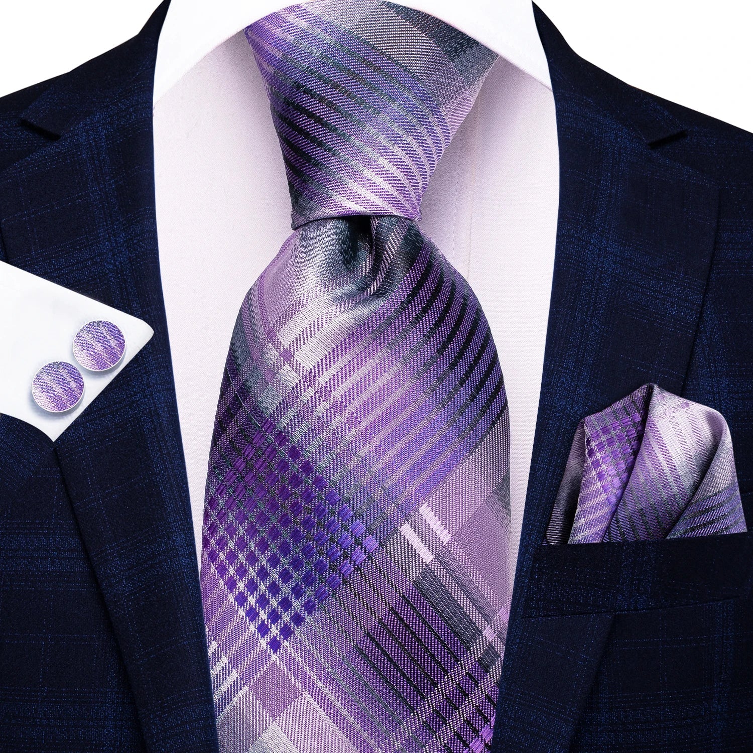 Silk Ties, Men's Formal Ties, Wedding Ties, Groom Wedding Ties, Groomsmen Ties, Men's Luxury Ties, Business Ties, Designer Ties, Paisley Ties, Plaid Ties, Men`s Tie Red Grey Purple Plaid Print Jacquard Woven Striped Tie Hanky Cufflinks Sets For Formal Wedding Business Party