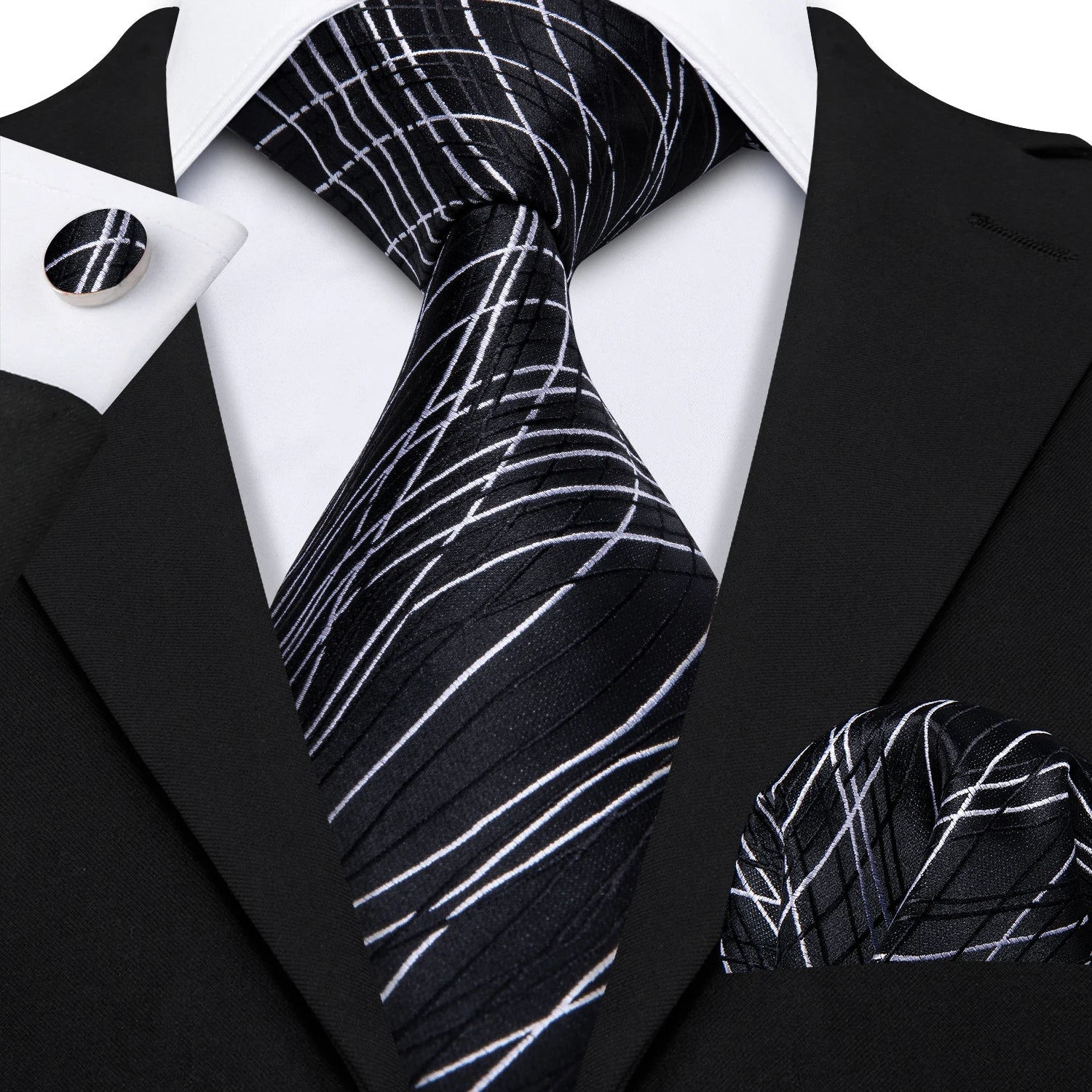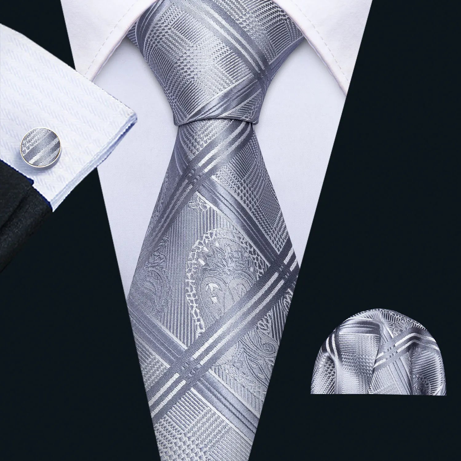 This premium men's tie set features a plaid jacquard weave in multiple colors and designs, complete with a matching tie, pocket square, and cufflinks. Designed for formal events such as weddings, business meetings, and parties, it offers a refined and sophisticated look. Perfect for grooms, groomsmen, or professionals, this elegant accessory set enhances your outfit with a polished, masculine style that commands attention.