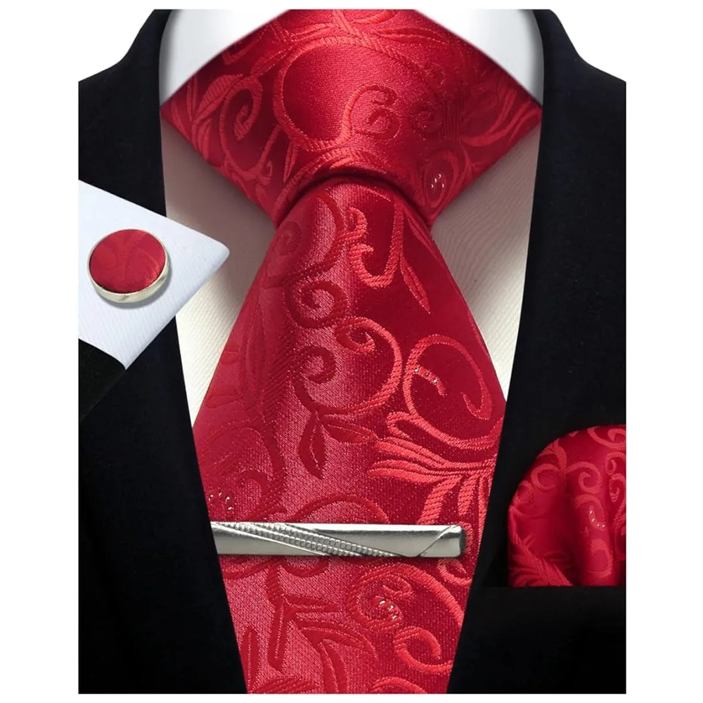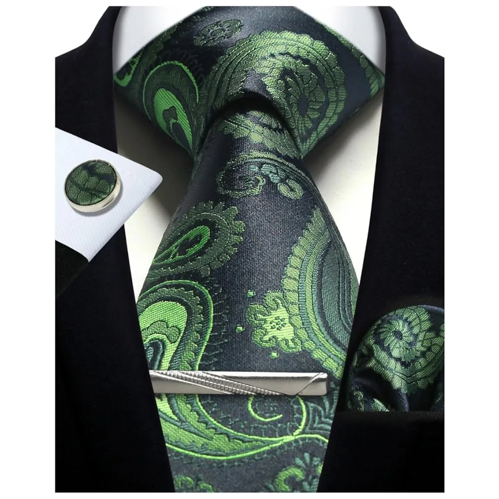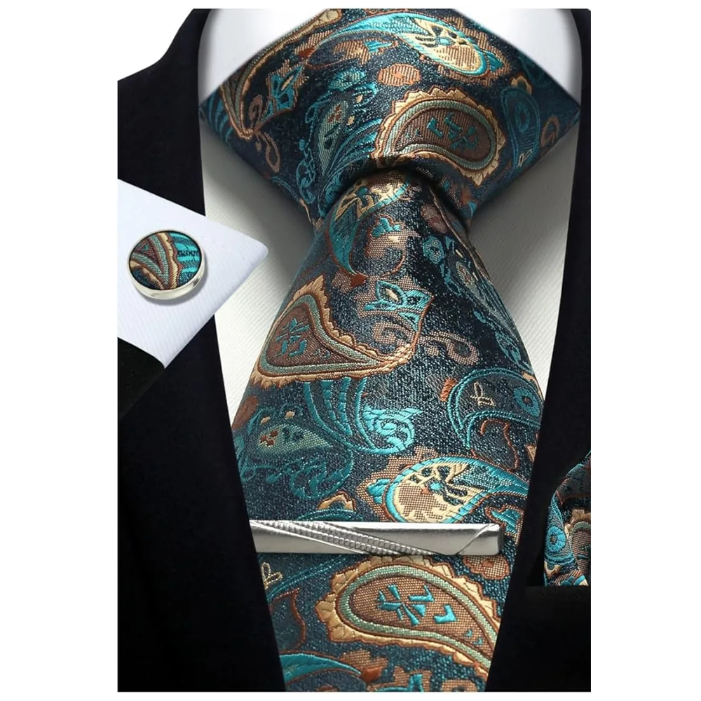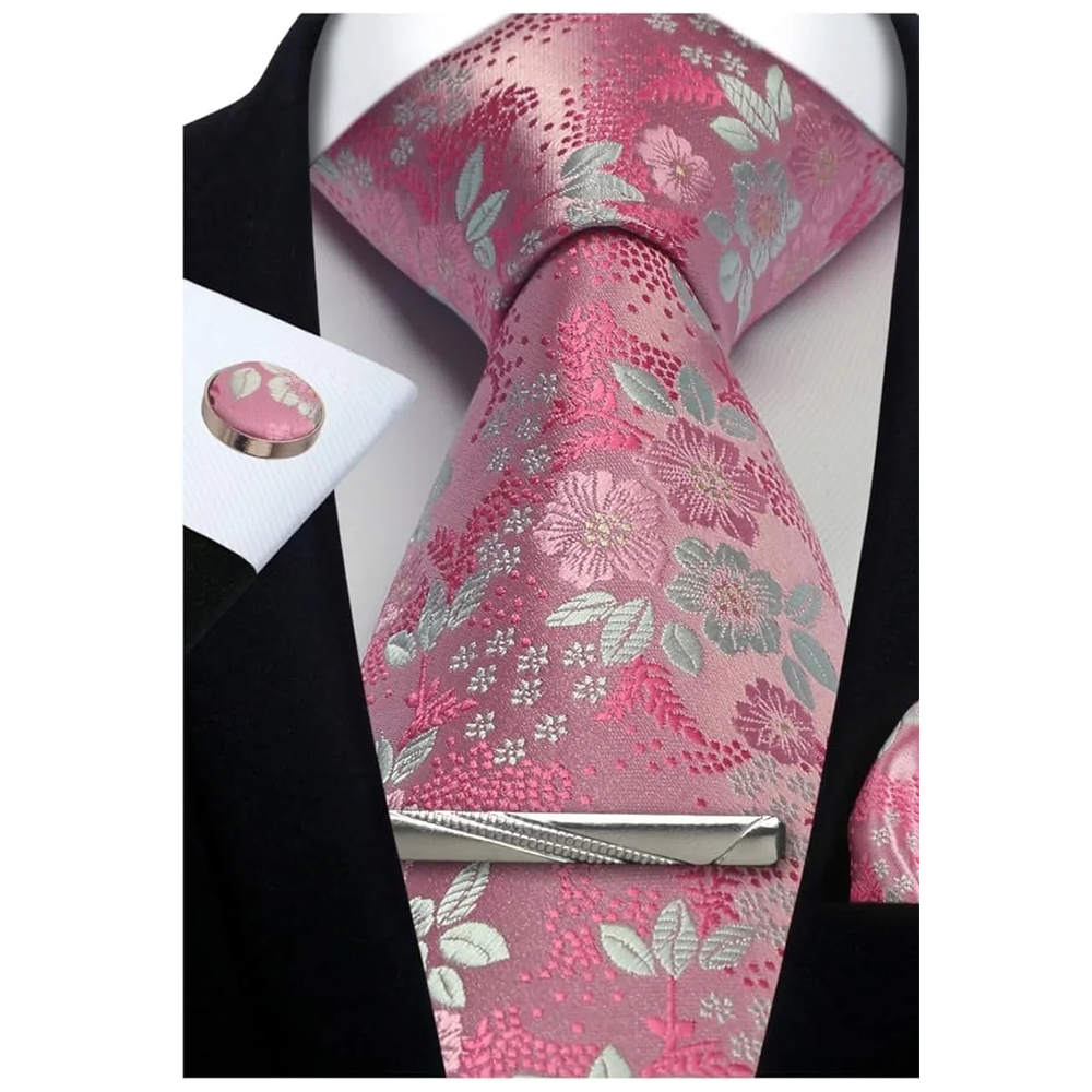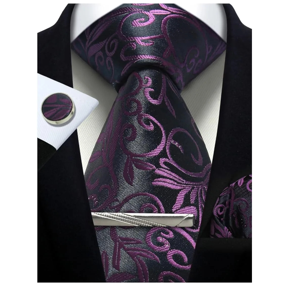 This premium men's tie set features a plaid jacquard weave in multiple colors and designs, complete with a matching tie, pocket square, tie clip and cufflinks. Designed for formal events such as weddings, business meetings, and parties, it offers a refined and sophisticated look. Perfect for grooms, groomsmen, or professionals, this elegant accessory set enhances your outfit with a polished, masculine style that commands attention.