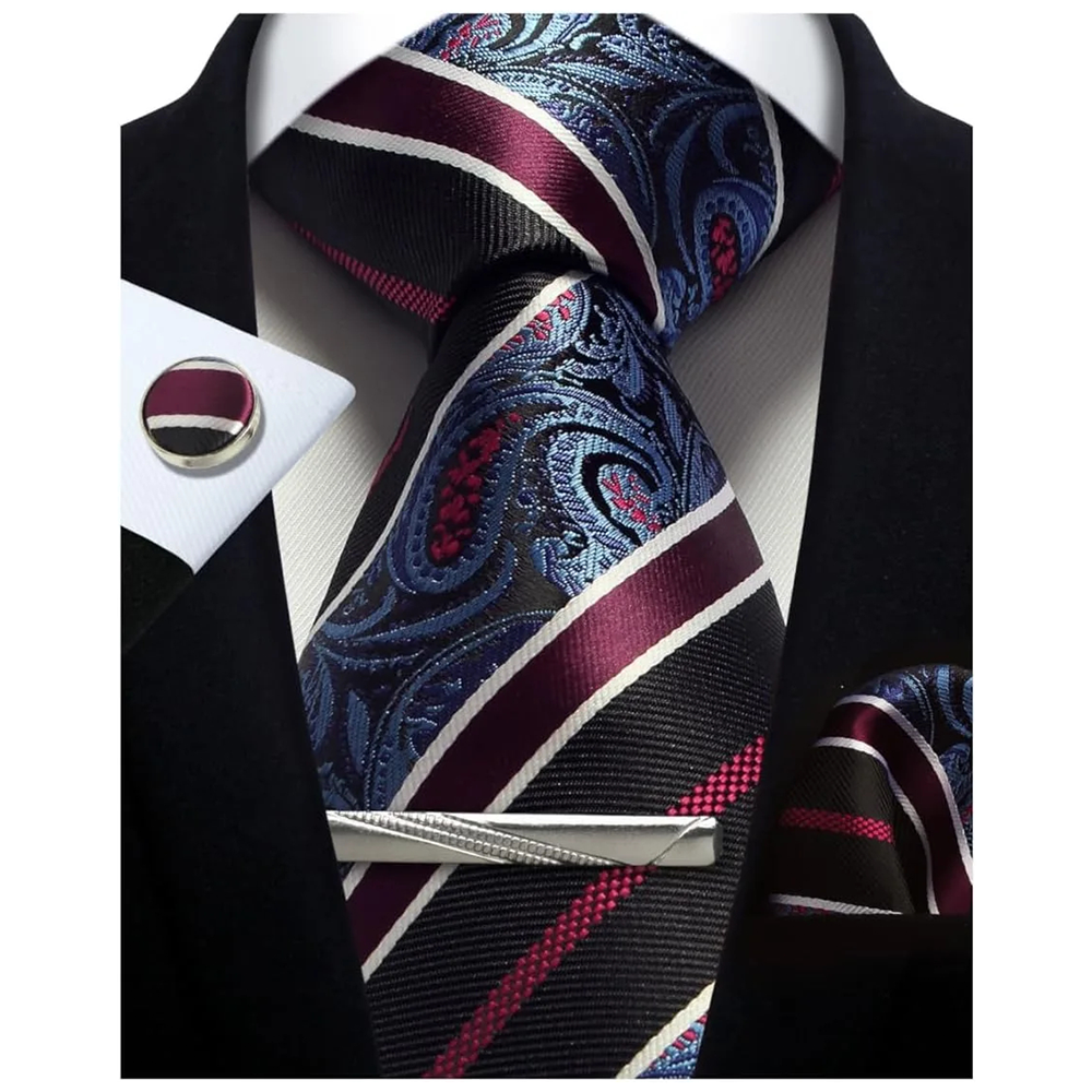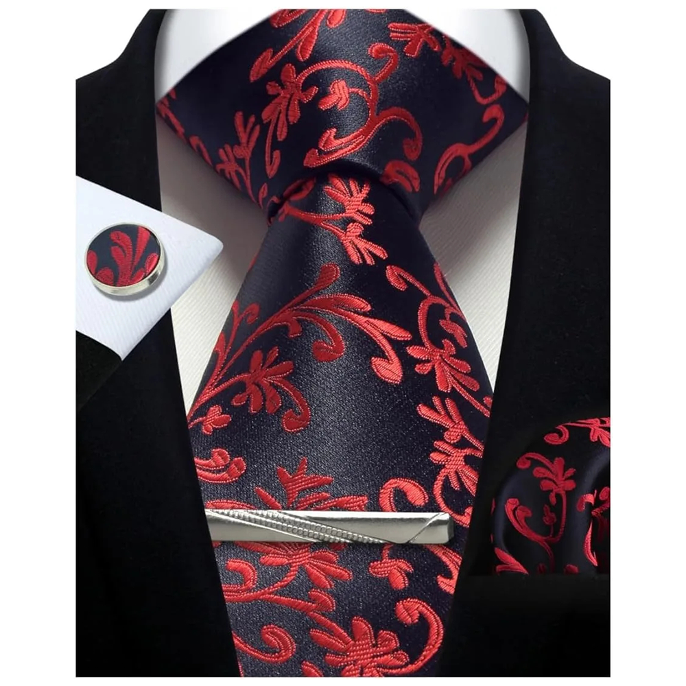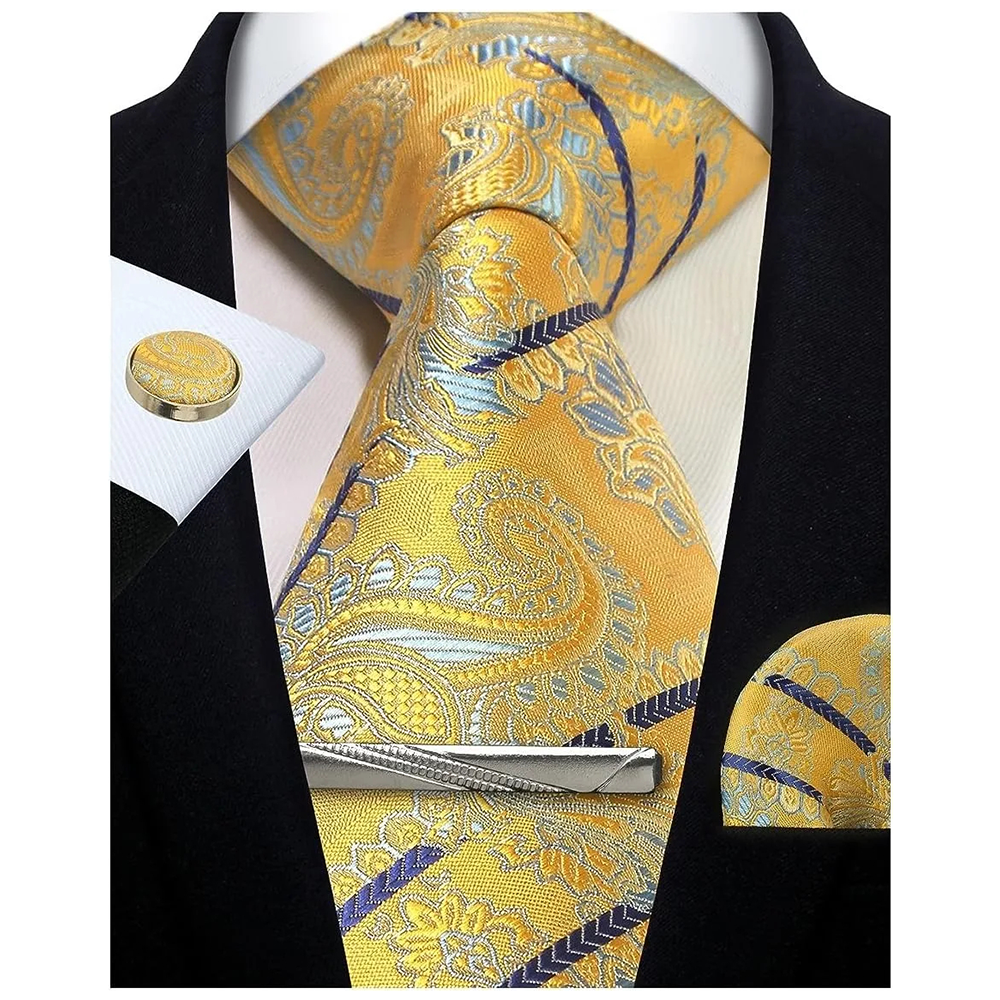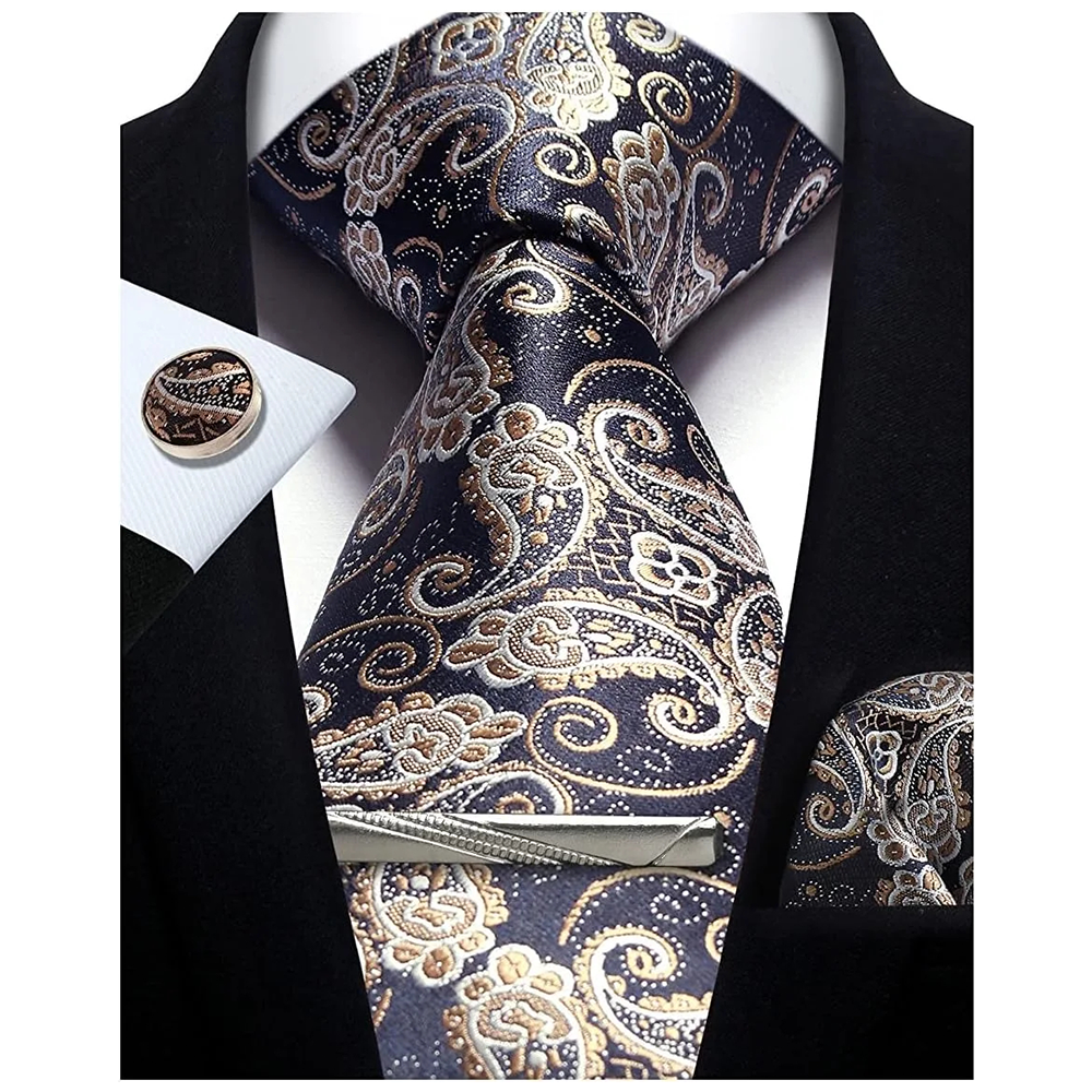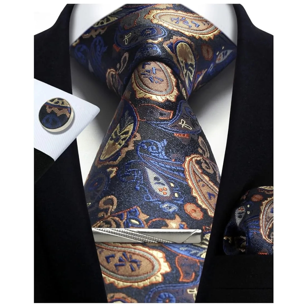 This premium men's tie set features a plaid jacquard weave in multiple colors and designs, complete with a matching tie, pocket square, tie clip and cufflinks. Designed for formal events such as weddings, business meetings, and parties, it offers a refined and sophisticated look. Perfect for grooms, groomsmen, or professionals, this elegant accessory set enhances your outfit with a polished, masculine style that commands attention.