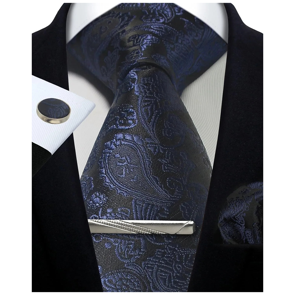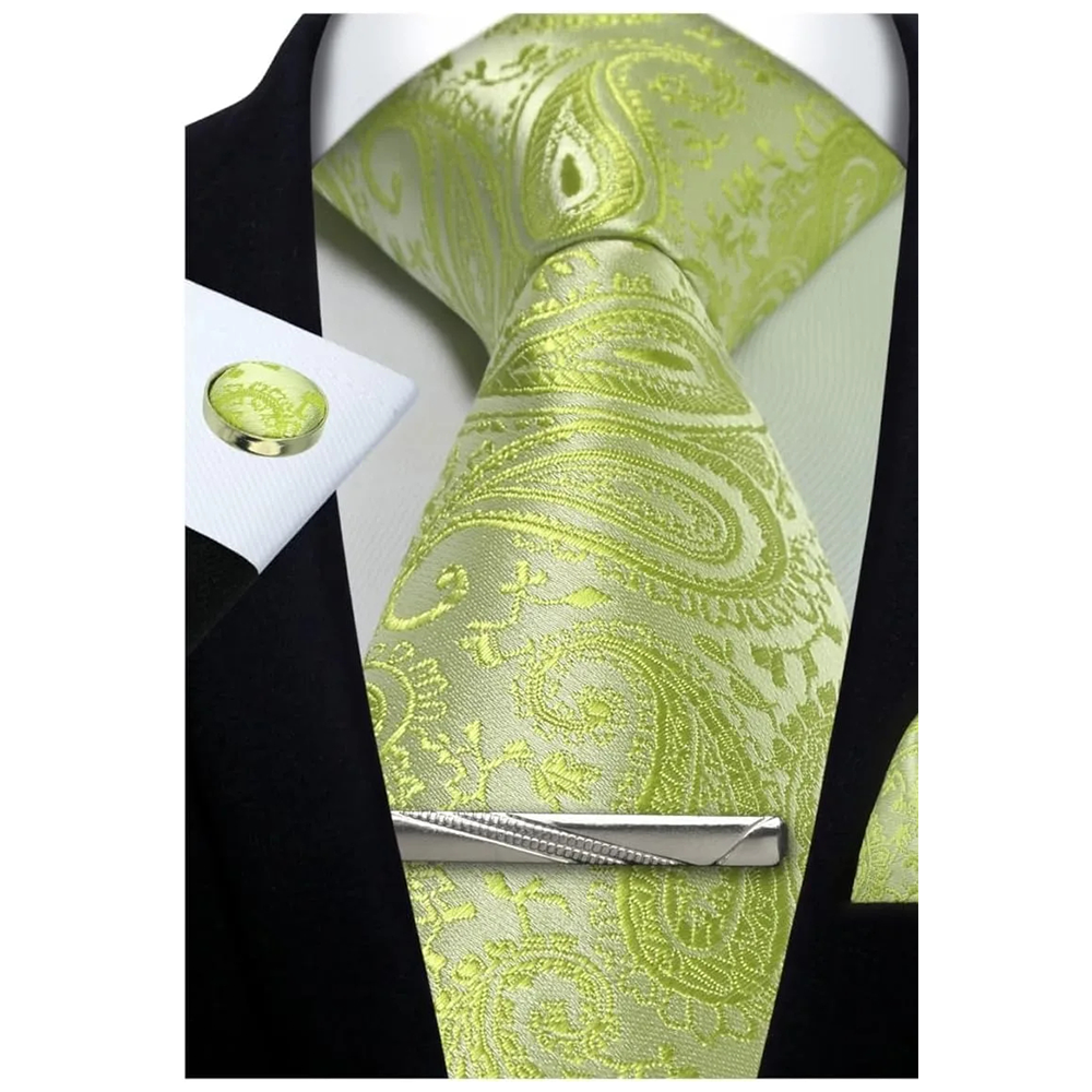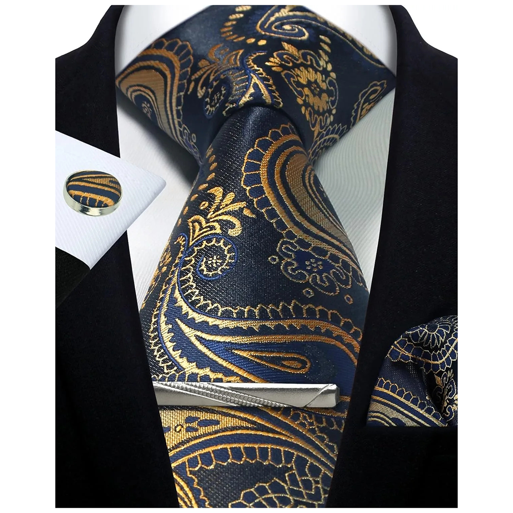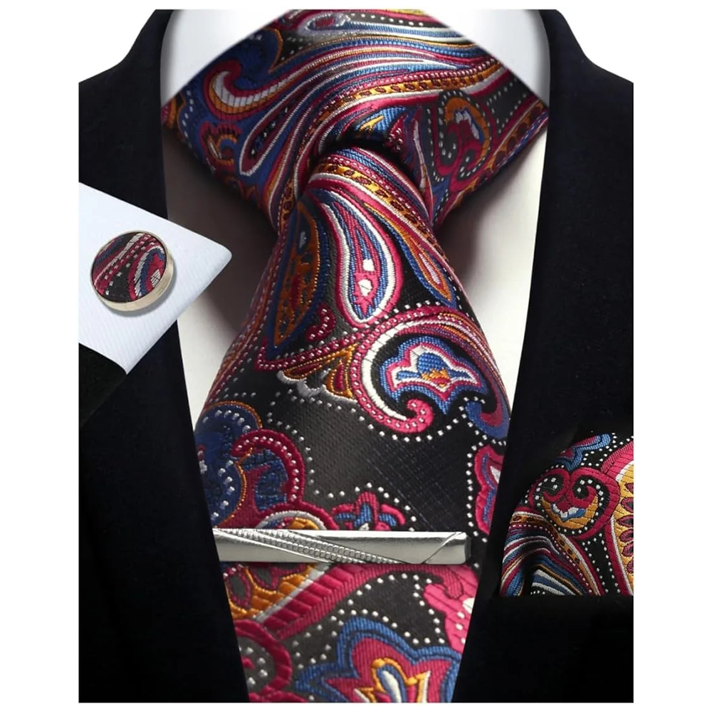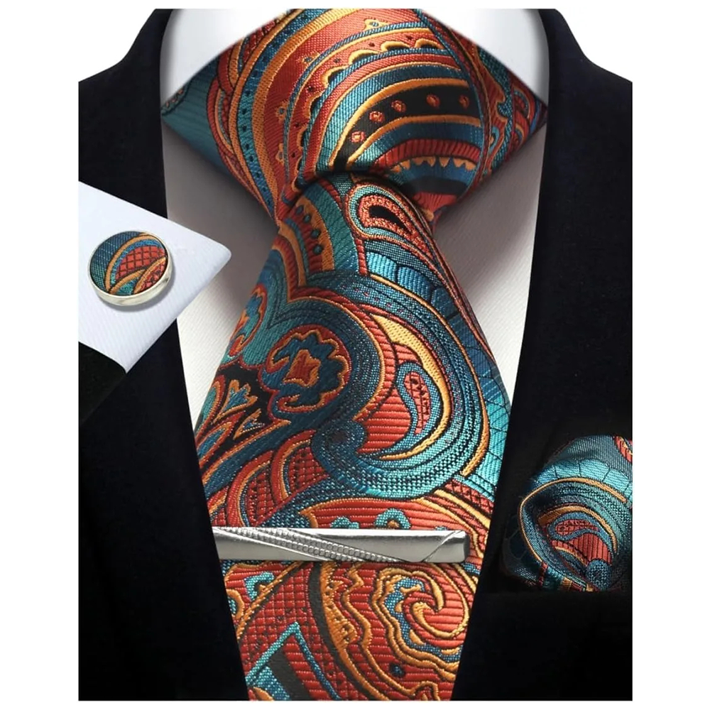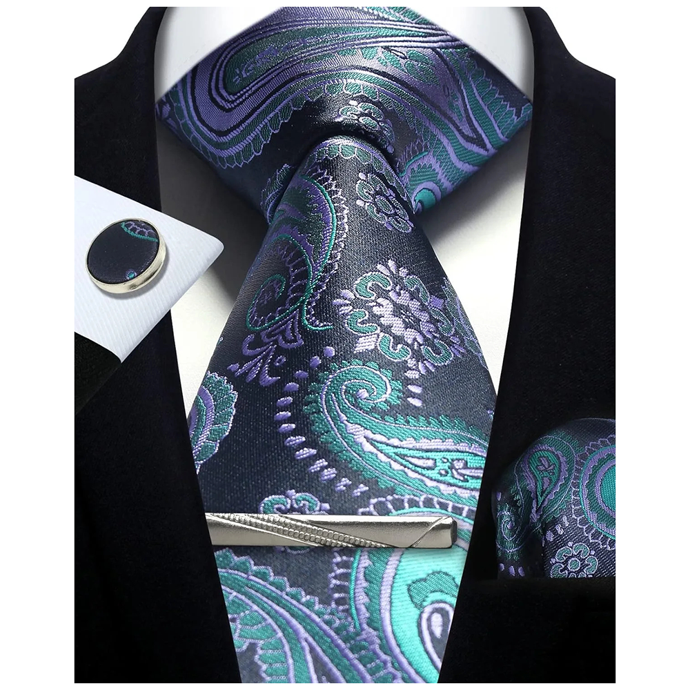 This premium men's tie set features a plaid jacquard weave in multiple colors and designs, complete with a matching tie, pocket square, tie clip and cufflinks. Designed for formal events such as weddings, business meetings, and parties, it offers a refined and sophisticated look. Perfect for grooms, groomsmen, or professionals, this elegant accessory set enhances your outfit with a polished, masculine style that commands attention.