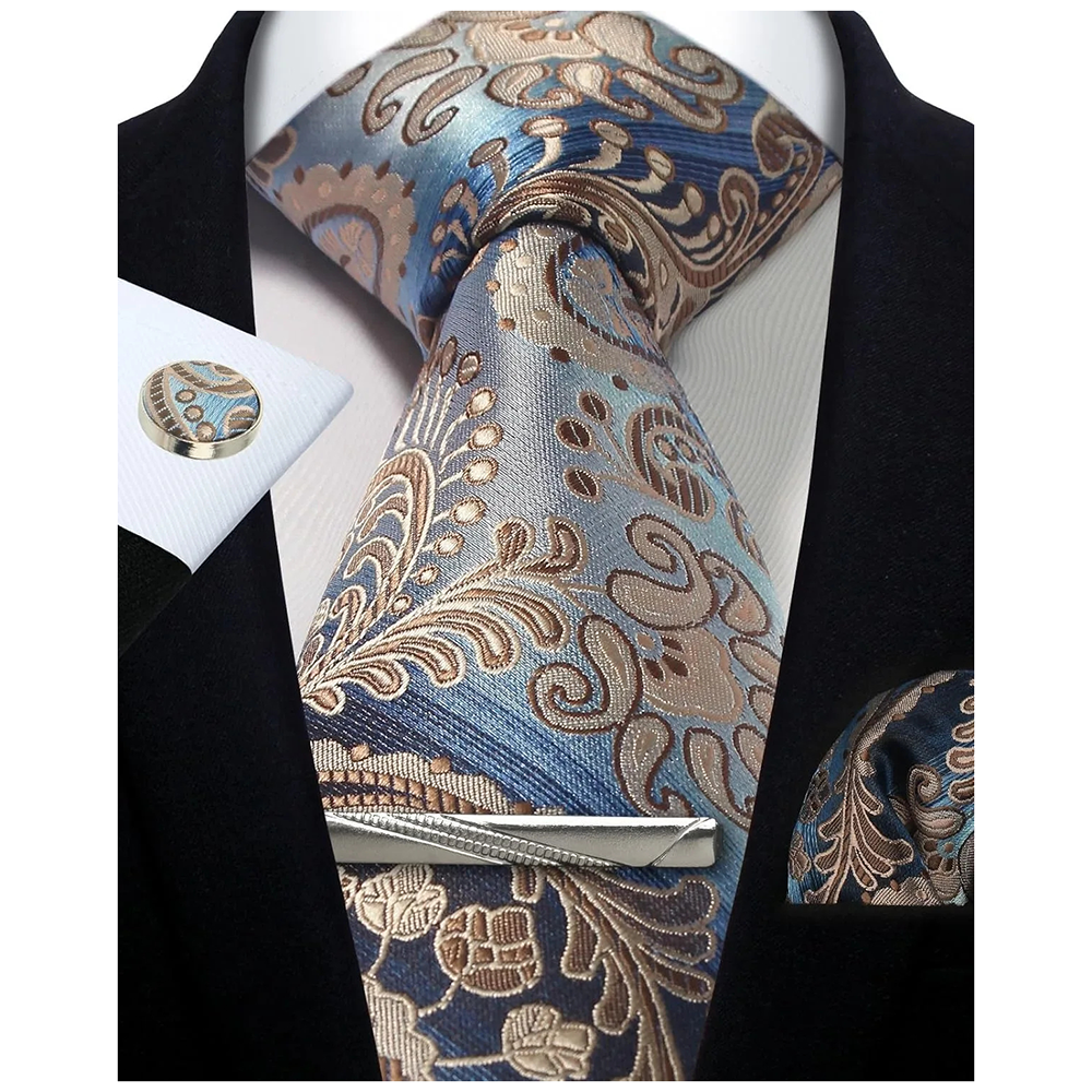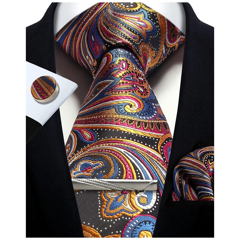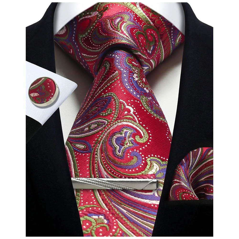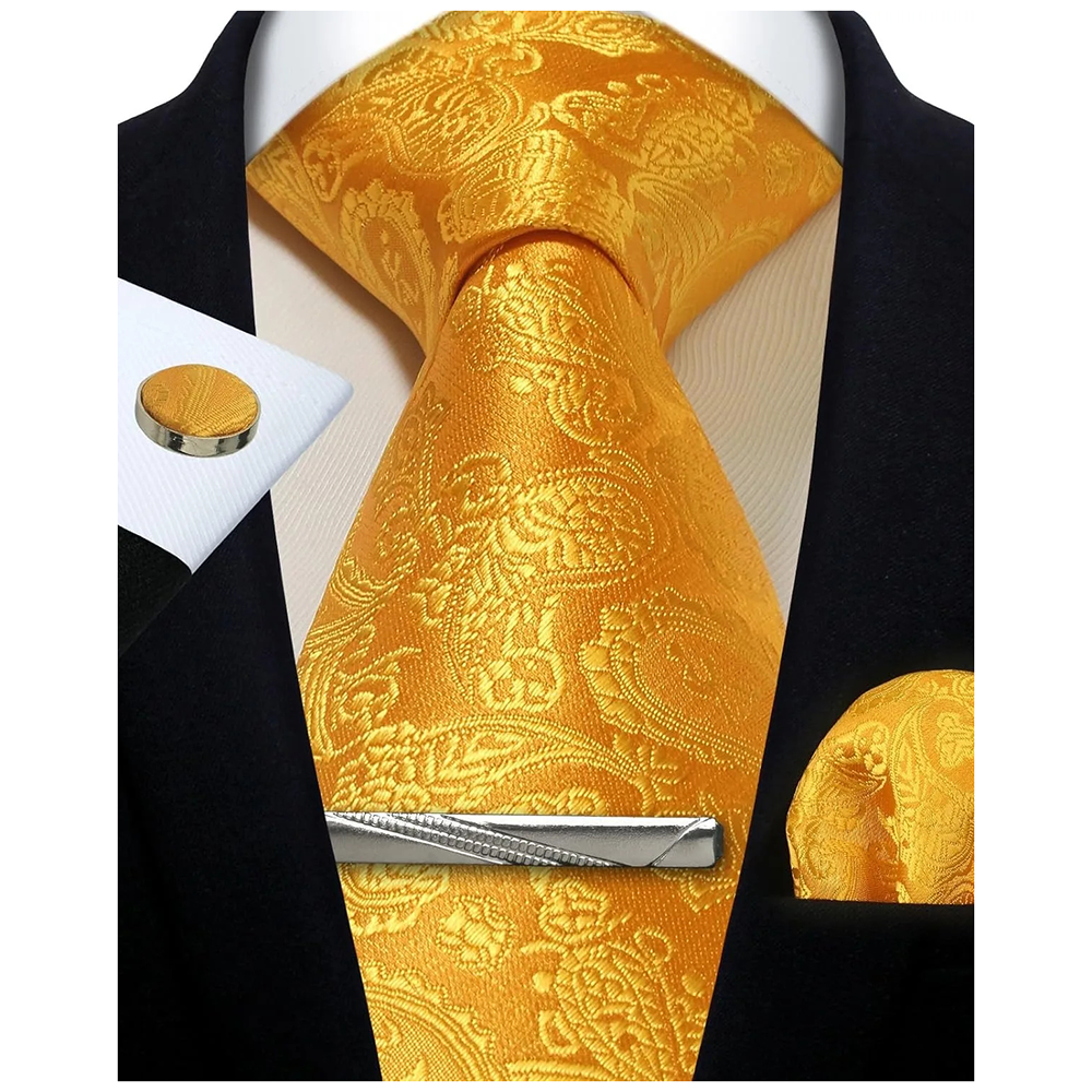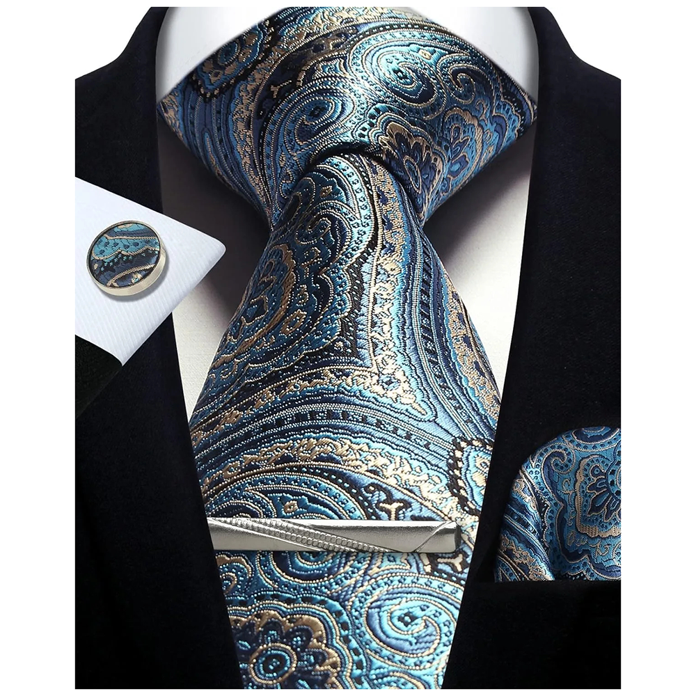 This premium men's tie set features a plaid jacquard weave in multiple colors and designs, complete with a matching tie, pocket square, tie clip and cufflinks. Designed for formal events such as weddings, business meetings, and parties, it offers a refined and sophisticated look. Perfect for grooms, groomsmen, or professionals, this elegant accessory set enhances your outfit with a polished, masculine style that commands attention.