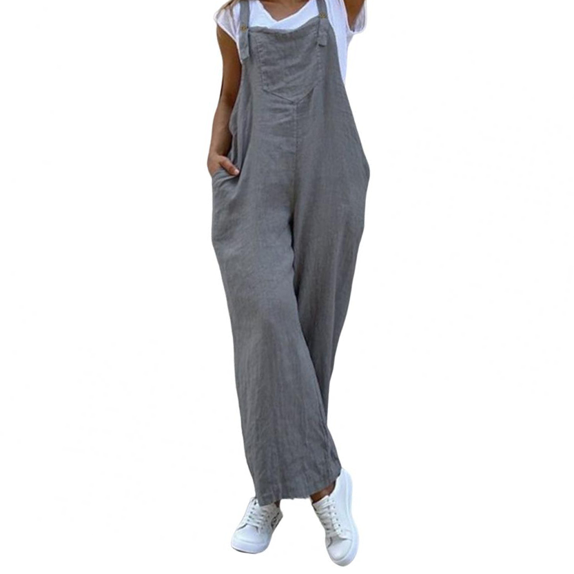 Loose Overalls, Pantsuit, Playsuits, Casual Overall, Loose Long Overalls, Strap Button Jumpsuit.