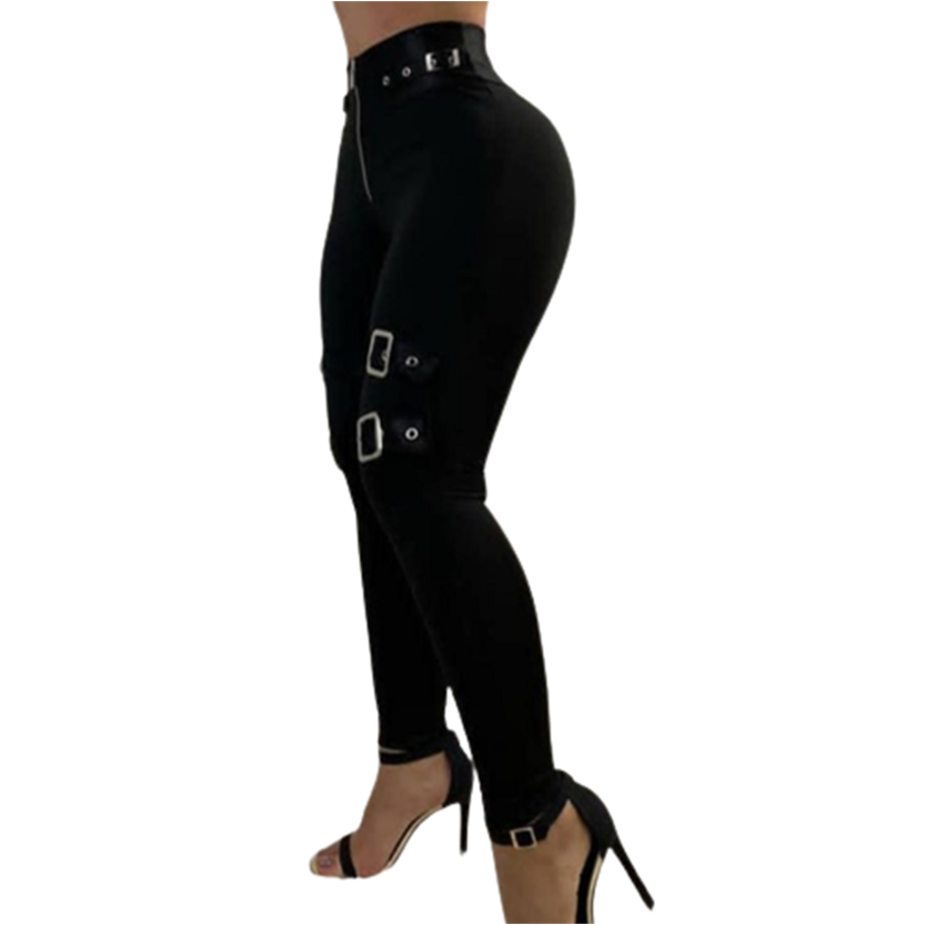 - Featuring a high waist with straps, buckles, zips and a form fitting style, these chic and comfortable pants are the perfect way to show off your individual flare and personality.