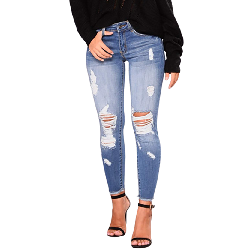 - Streamlined pencil jeans pants, casual stretchy denim pants for women are soft comfortable and form fitting with classic 5-pocket design, zip fly and button closure and ripped design. These sexy jeans hug your curves and flatter your shape.