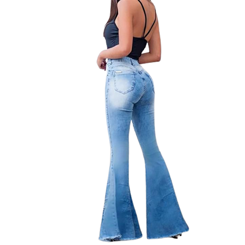 - QUALITY: Made from durable cotton stretch blend denim, these high waisted bell-bottomed jeans make a great fashion statement. From a lunch date to a night on the town, these jeans have got you covered. Contoured through the hips and thighs these slim fitting flared jeans have enough stretch to keep you comfortable and looking stylish no matter the occasion.