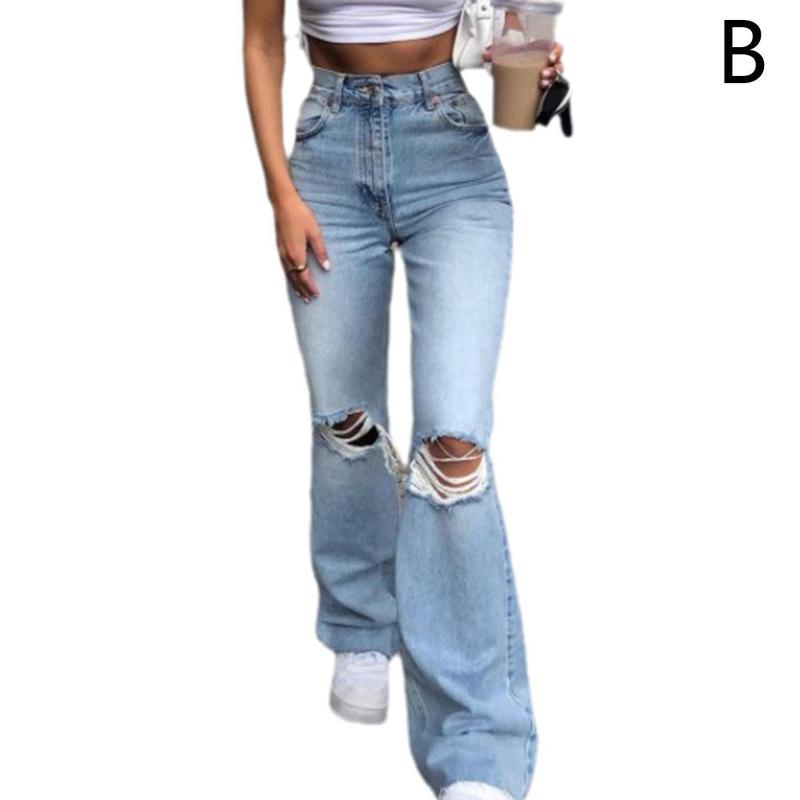 - Vintage flare bell bottom jeans pants, casual stretchy denim pants for women are soft comfortable and form fitting with classic 5-pocket design, zip fly and button closure and ripped knee. These sexy jeans hug your curves and flatter your shape highlighting your charming figure.