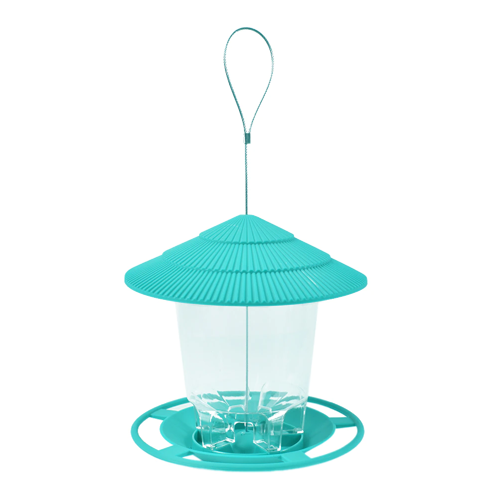 - DURABLE BIRD FEEDER - Gazebo-style design bird feeder is constructed of heavy-duty plastic for long lasting use. Attract birds and view them from windows, decks or terraces.
