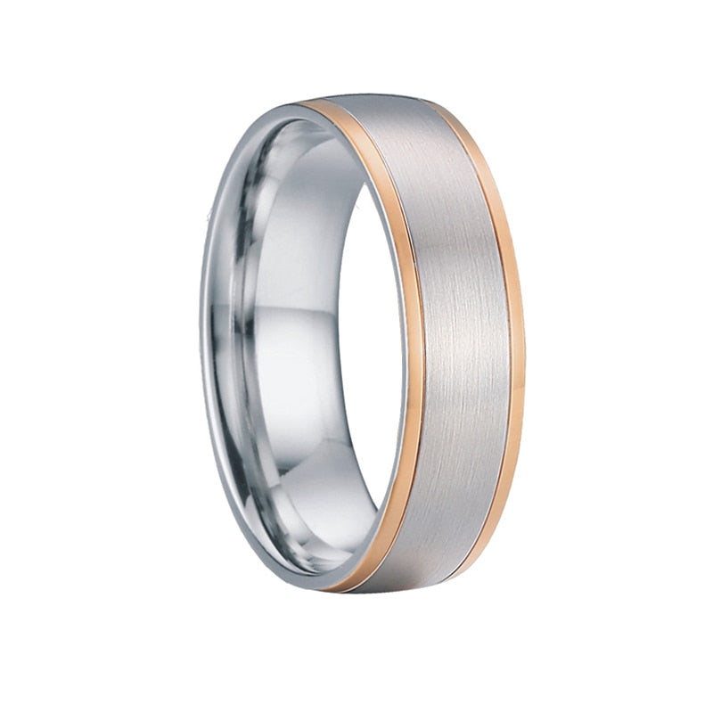 - The brilliant gold, rose gold and silver Titanium, Stainless Steel wedding band rings for men and women adds a touch of simplicity for an elegant, and a sleek look.