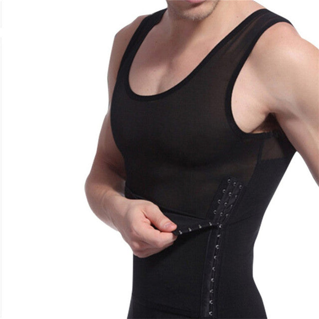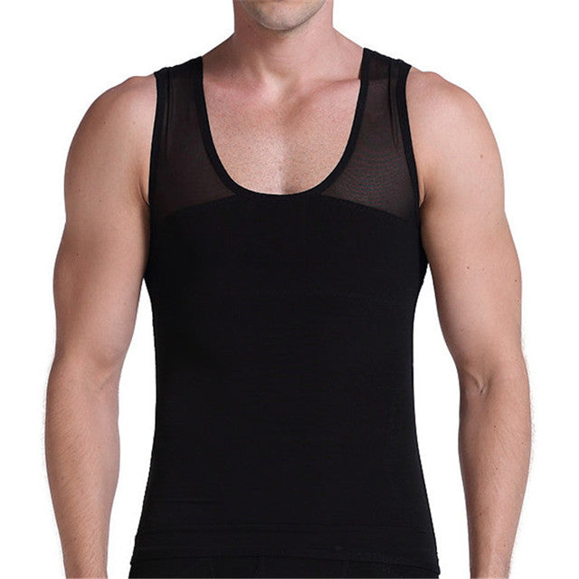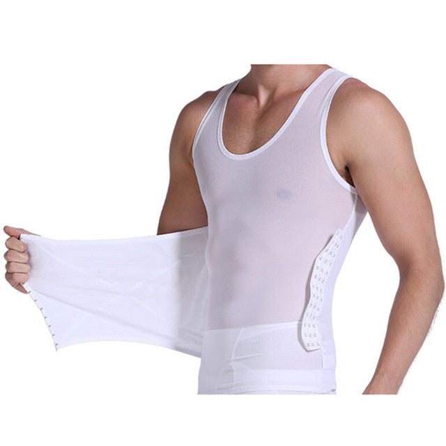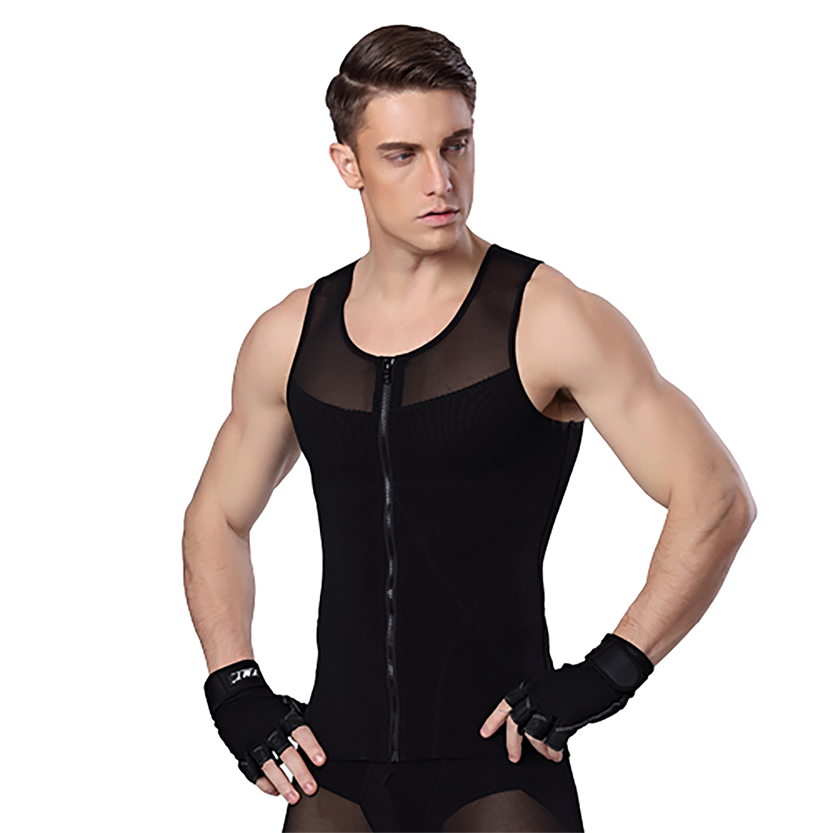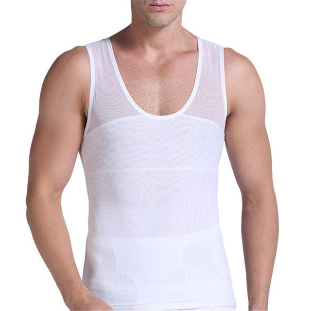 - SLIMMING UNDERSHIRT : Shoulder mesh material allows for easy take on and take off, unlike other similar chest slimming vests for men, ours are made of the highest quality binding spandex. Our shapewear binding vests for men will instantly provide the appearance of fitness and fat loss