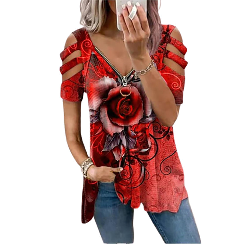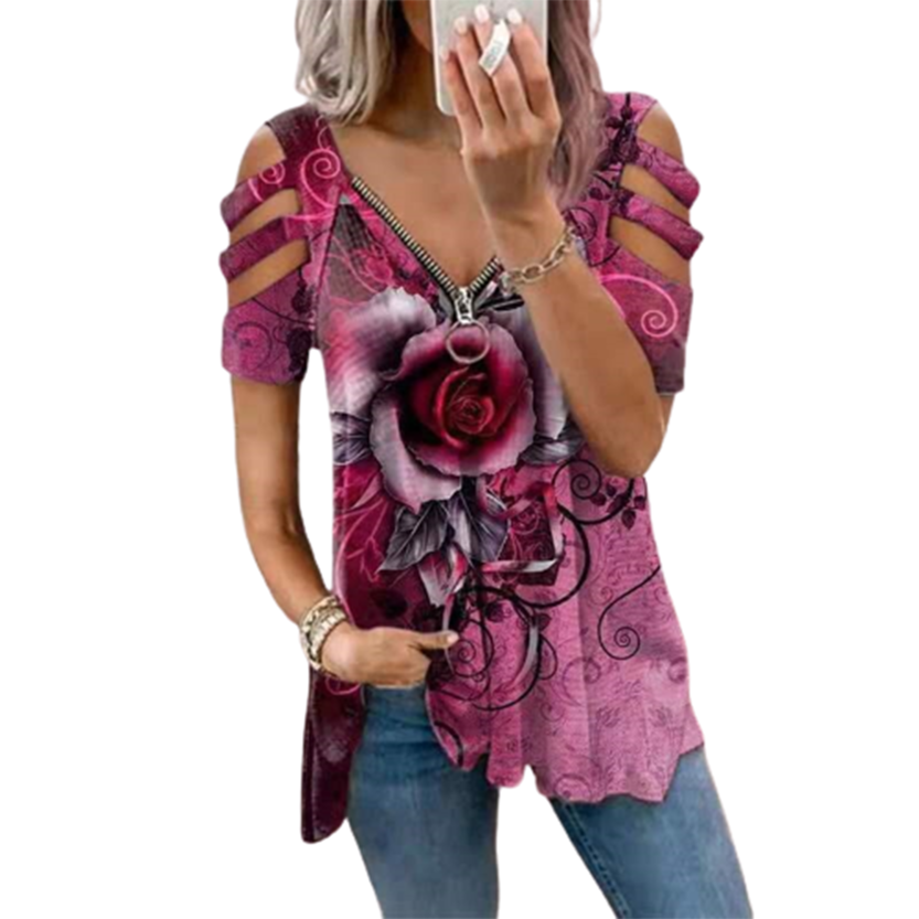 Summer Shirt, Stunning Rose Print Blouse, Oversized Fashion T-shirt. Plus Size Shirt, Women's Plus Size T-Shirts, Blouses, Larger Size Shirts, Tops.