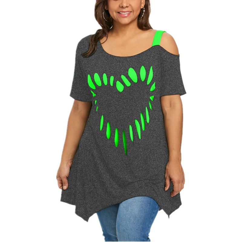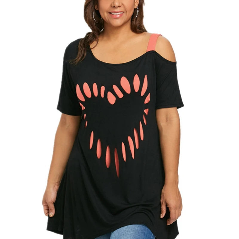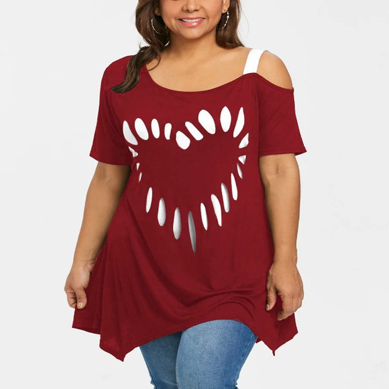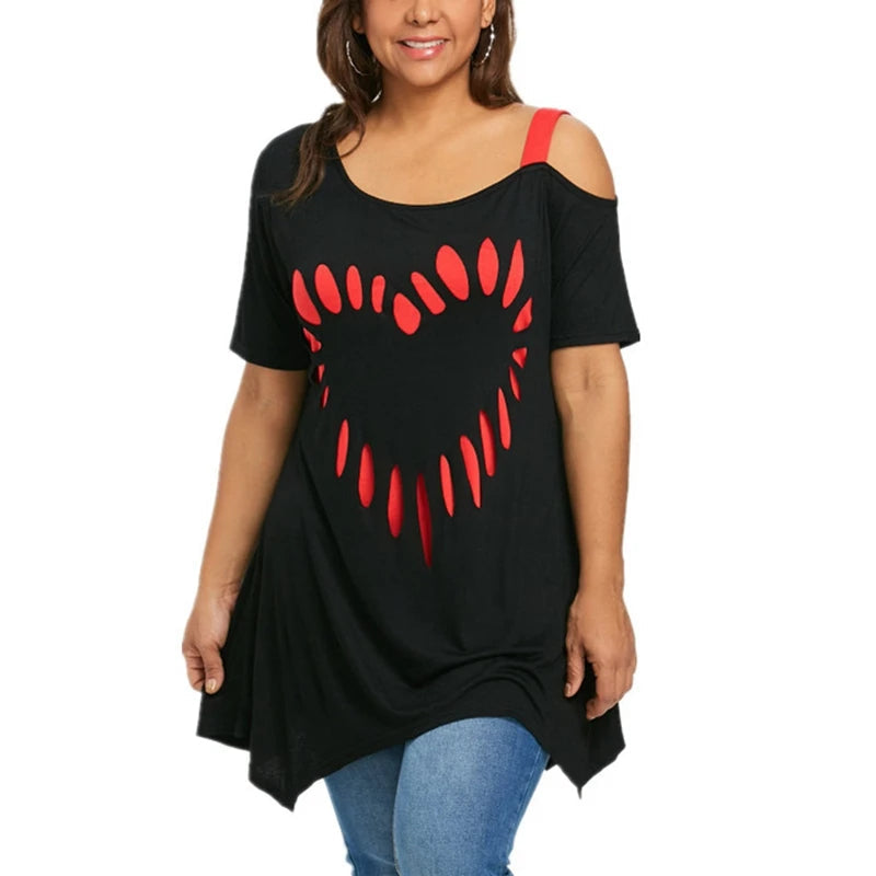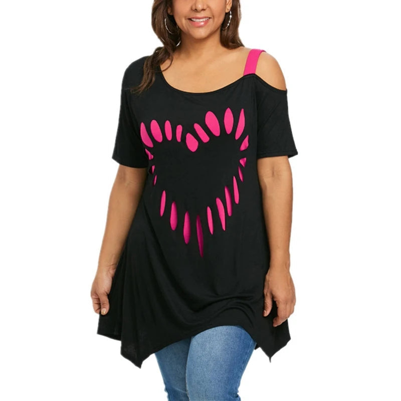 Heart Print Blouse, Oversized Fashion T-shirt. Plus Size Shirt, Women's Plus Size T-Shirts, Blouses, Larger Size Shirts.