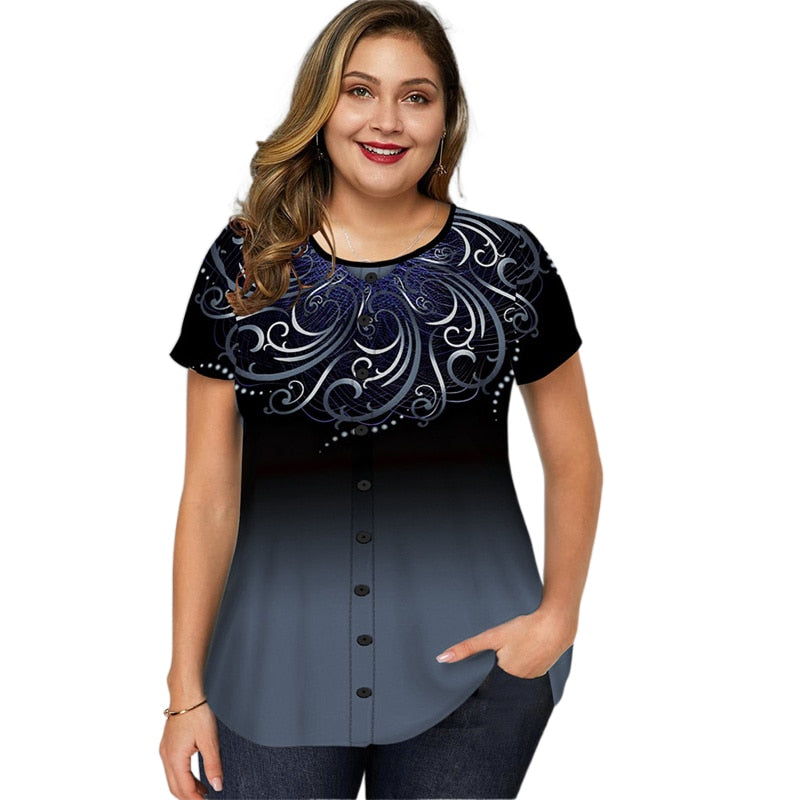 T-Shirt, Blouse, Stunning Colored Ombre Print Blouse, Summer, Oversized Fashion T-shirt. Plus Size Shirt, Women's Plus Size T-Shirts, Blouses, Larger Size Shirts.