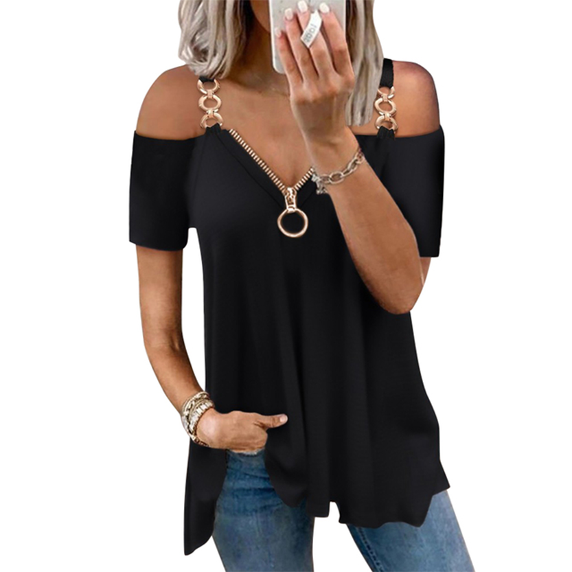 - Elegant V neck zip top shirt for women. Made of super soft and lightweight material, stretchy and breathable, cool to wear, and feels great to the touch.