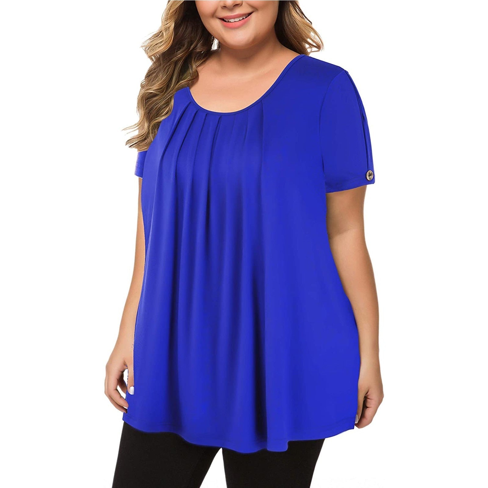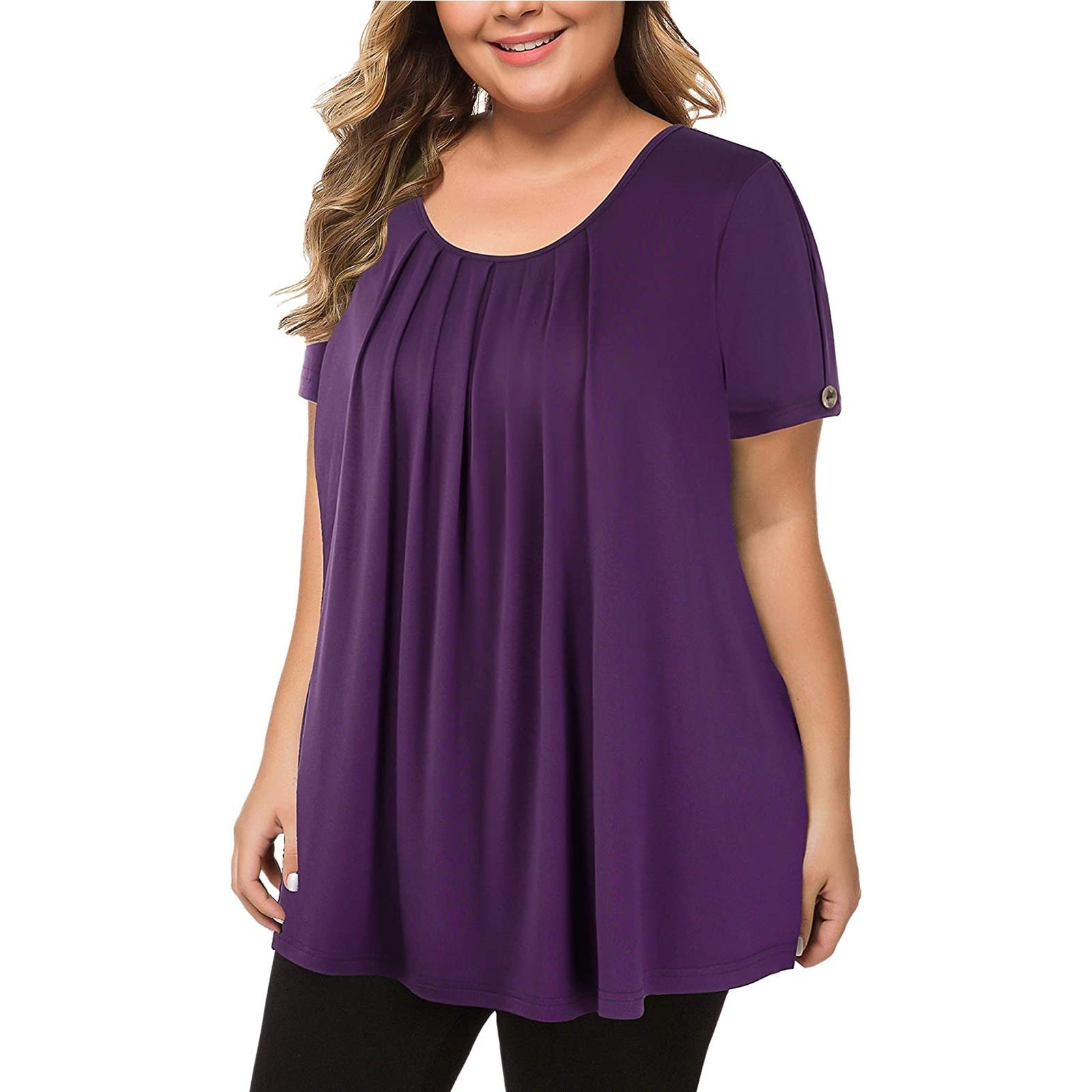 Plus Size Shirt, Floral Print Blouse, Oversized Fashion T-Shirt. Plus Size Shirt, Women's Plus Size T-Shirts, Blouses, Top, Larger Size Shirts, Pleated Top, Women Casual O-Neck Top, Short Sleeve T-shirt, Summer Loose Irregular Fashion Blouse.