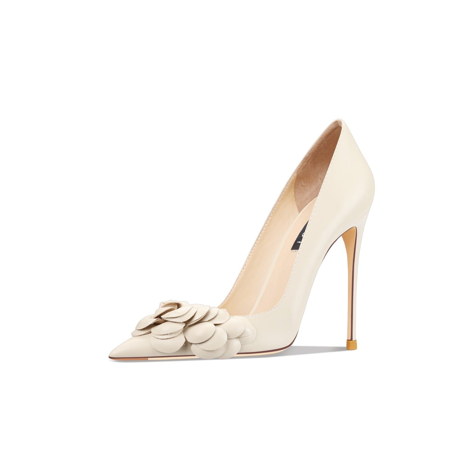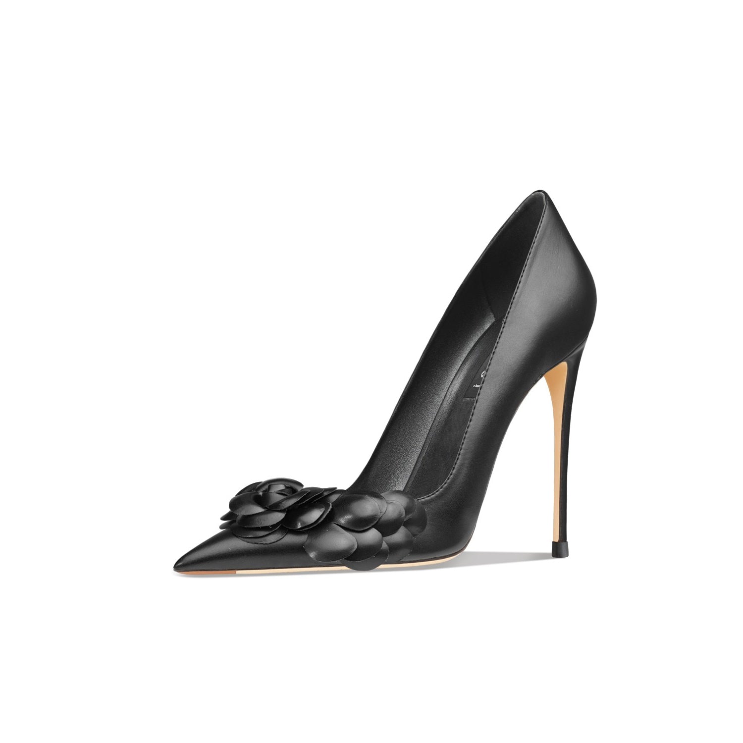 - Featuring, elegant floral buckle design on genuine leather, high instep, thin stiletto high heel and anti-slip ridged rubber sole these versatile slip on pumps are an easy choice for any occasion.