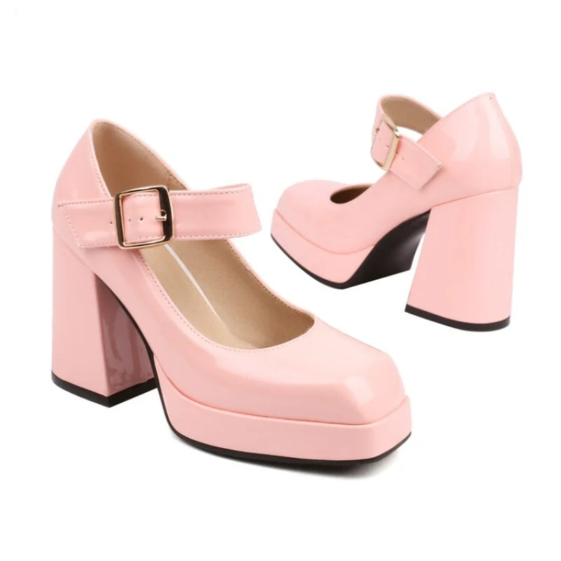 • Made from high quality genuine patent leather in elegant bold colors, and featuring square toe, chunky block heel, anti-skid platform soles, thick ankle strap, buckle strap closure, seam detailing and soft inner cushioning for comfort and support. These striking formal shoes are sure to please.