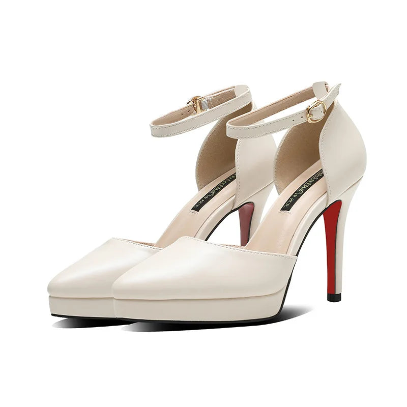 - Featuring classic pointed toe, thin ankle straps, buckle closure, soft inner cushioning for comfort, non-slip, ridged rubber soles, and finely finished with thin high stiletto heels, these elegant refined shoes are an easy choice for any occasion.