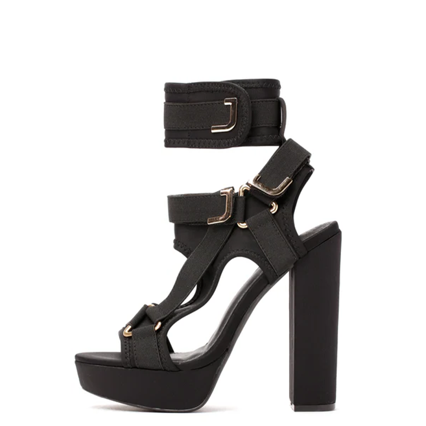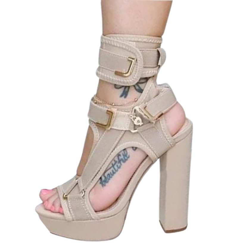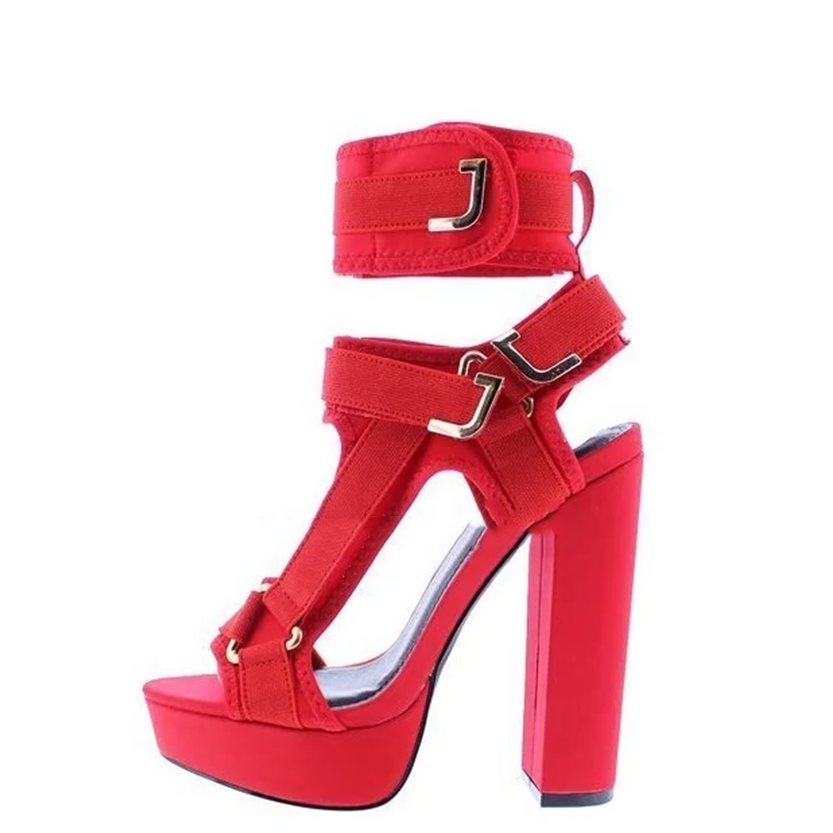 - Featuring a classic gladiator buckle strap design that is cropped above the ankle, elegant open toe, easy slip on and off access with multiple buckle straps and finished with Super High chunky block heels and ridged rubber soles, these adorable shoes make an easy choice for any occasion.