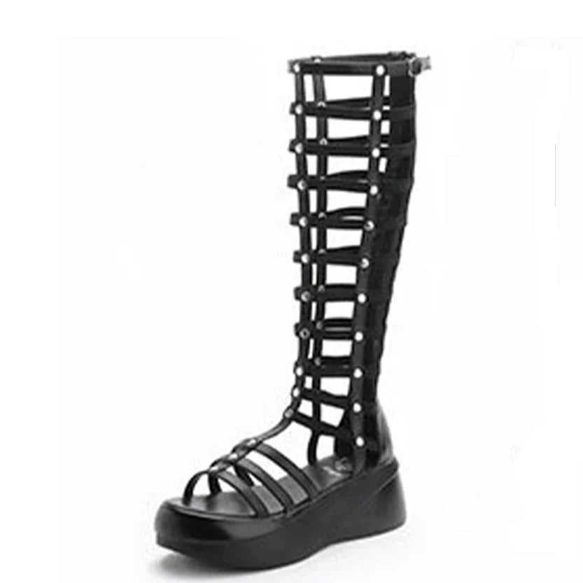 Summer Sandals, Strappy Sandals, Gothic Style Shoes, Women Gladiator Casual Sandals, Gothic Punk Shoes, PU Leather Shoes.