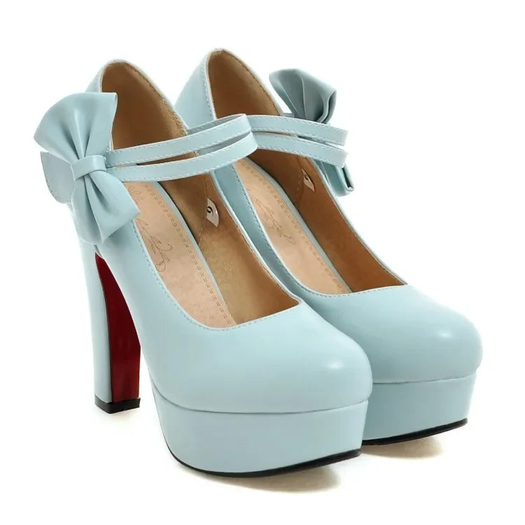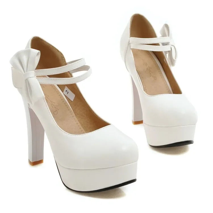 - Made from quality PU leather and featuring chunky block heels, anti-skid platform soles, round toes, double ankle strap with decorative bow, velcro clasp, seam detailing and soft cushioning. These Mary Jane, Lolita style shoes will be sure to please.
