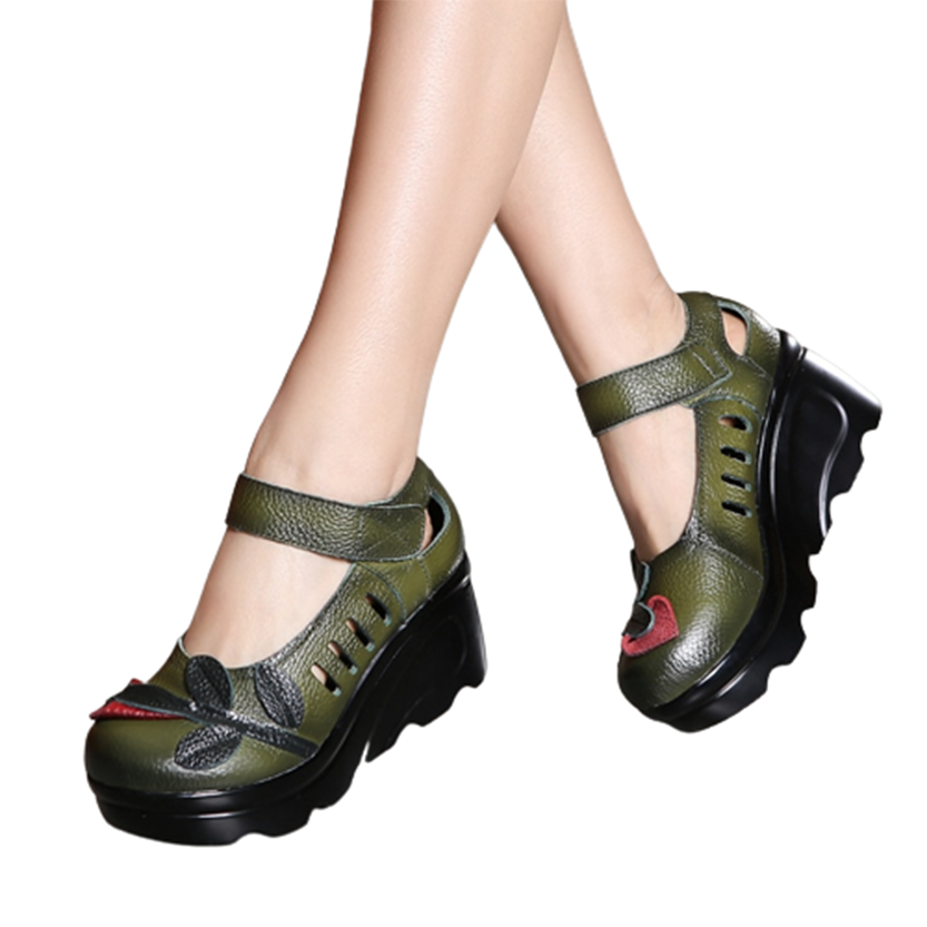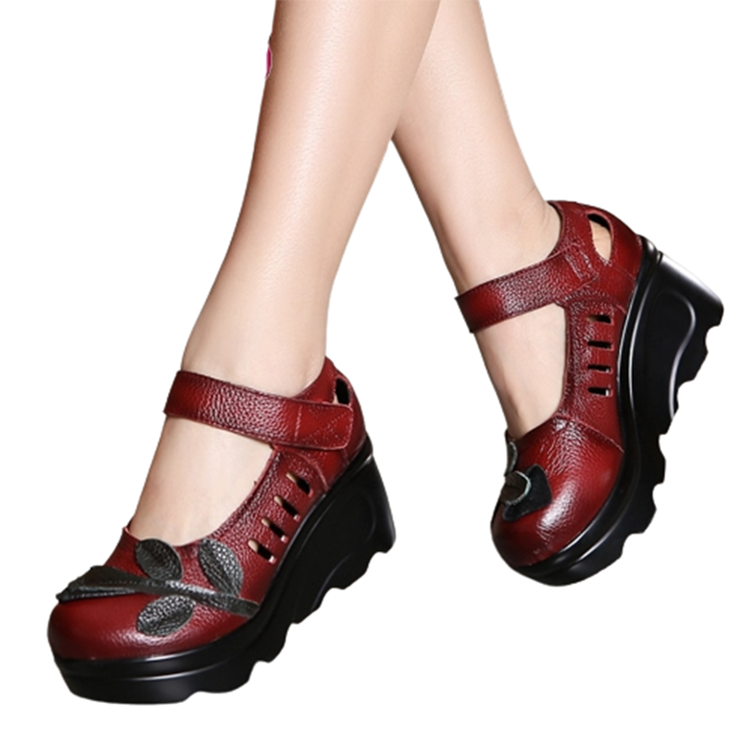 - Made from high quality genuine leather and featuring chunky wedge heel, anti-skid soles, round toes, velcro strap closure, and seam detailing, these Lolita style shoes are sure to please.