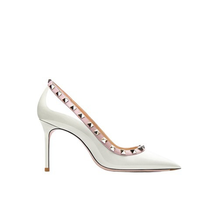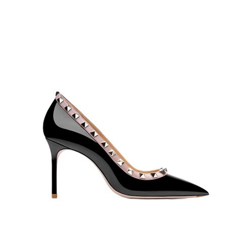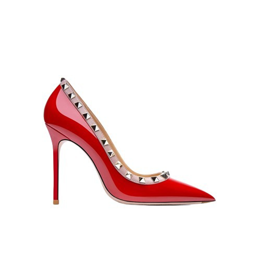 - Featuring, elegant rivetted design on genuine patent leather, high instep, thin stiletto high heel and ridged sole these versatile slip on pumps are an easy choice for any occasion.