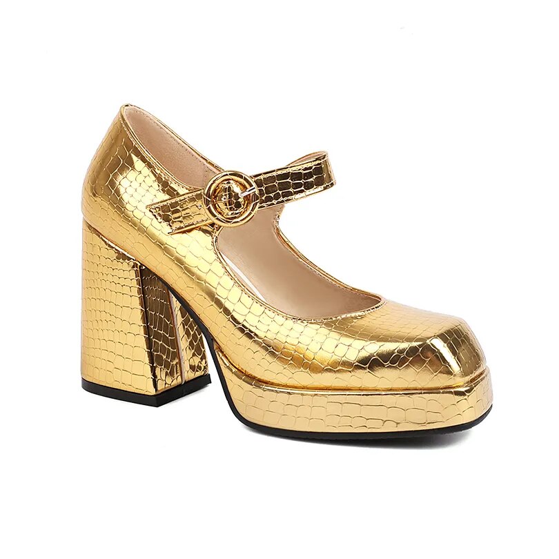 - Made from quality faux PU leather and featuring chunky square heel, alligator patterned design, anti-skid platform soles, square toes, buckle clasp, seam detailing and soft cushioning. These Mary Jane, Lolita style shoes will be sure to please.